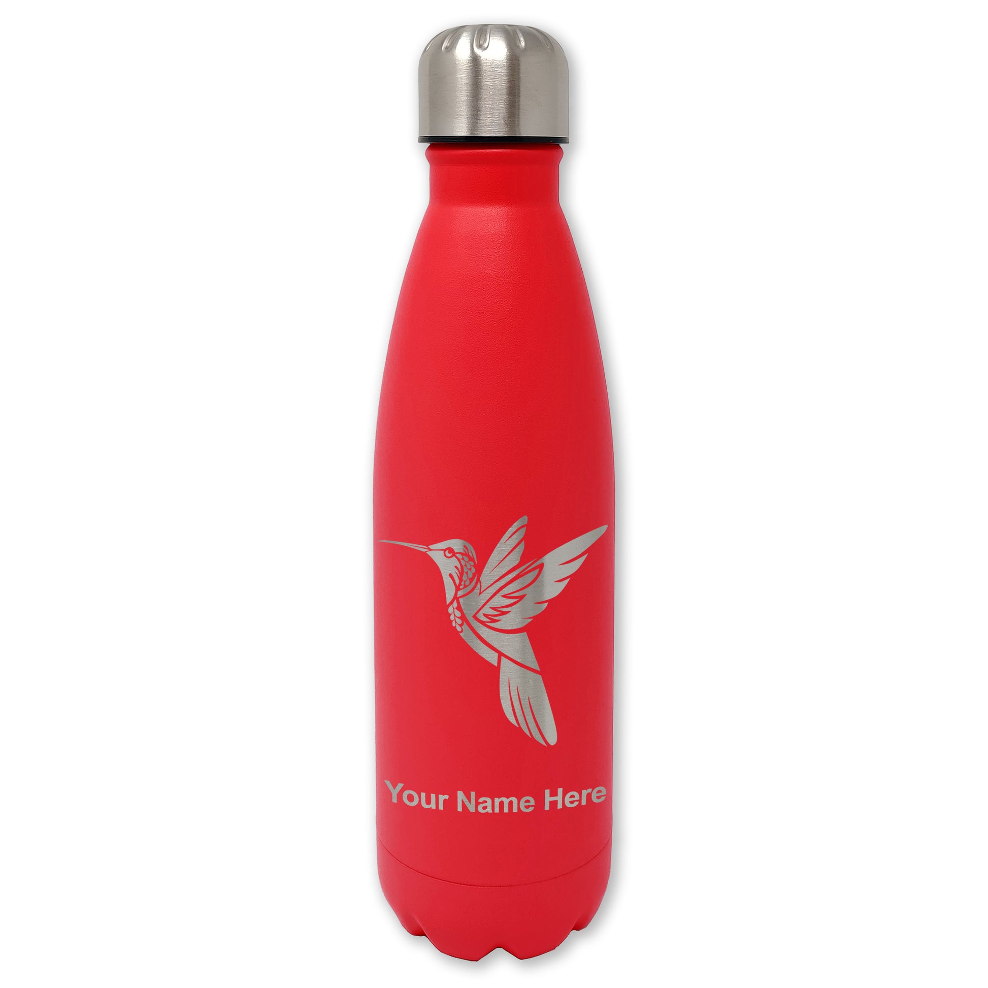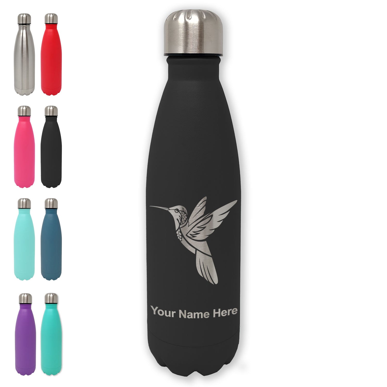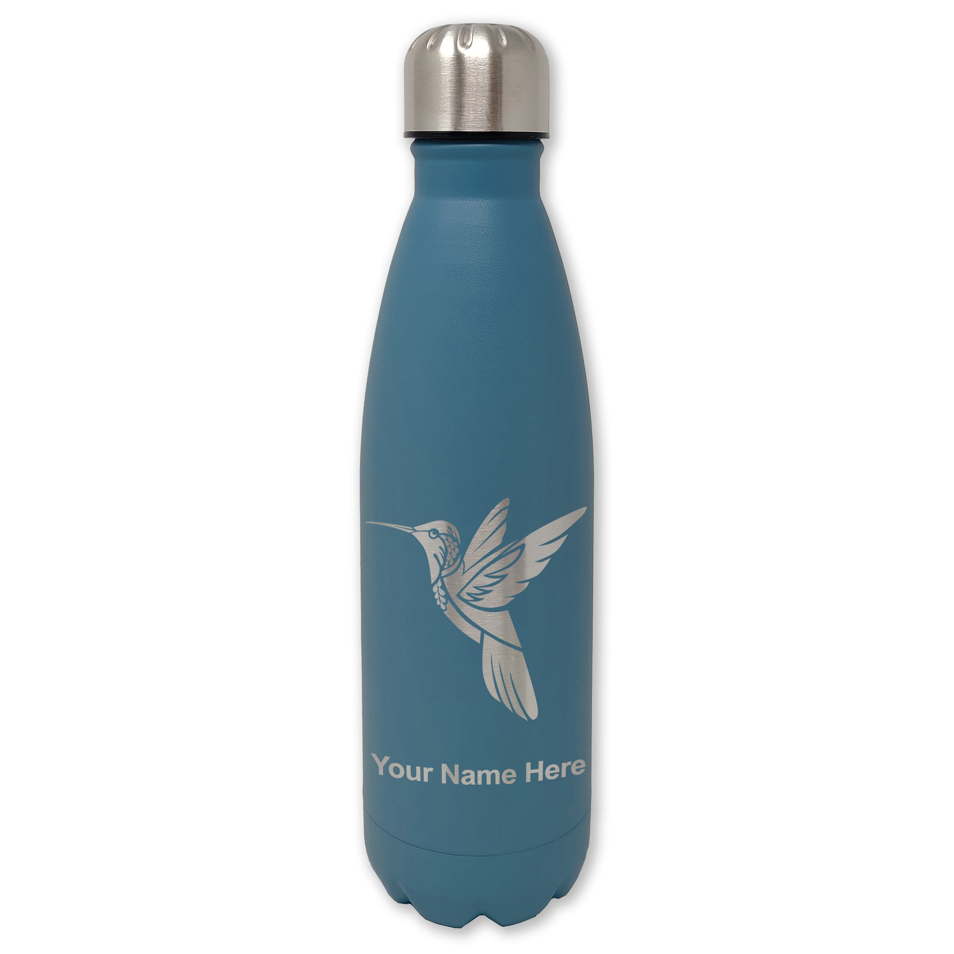 LaserGram Double Wall Water Bottle, Hummingbird, Personalized Engraving Included
