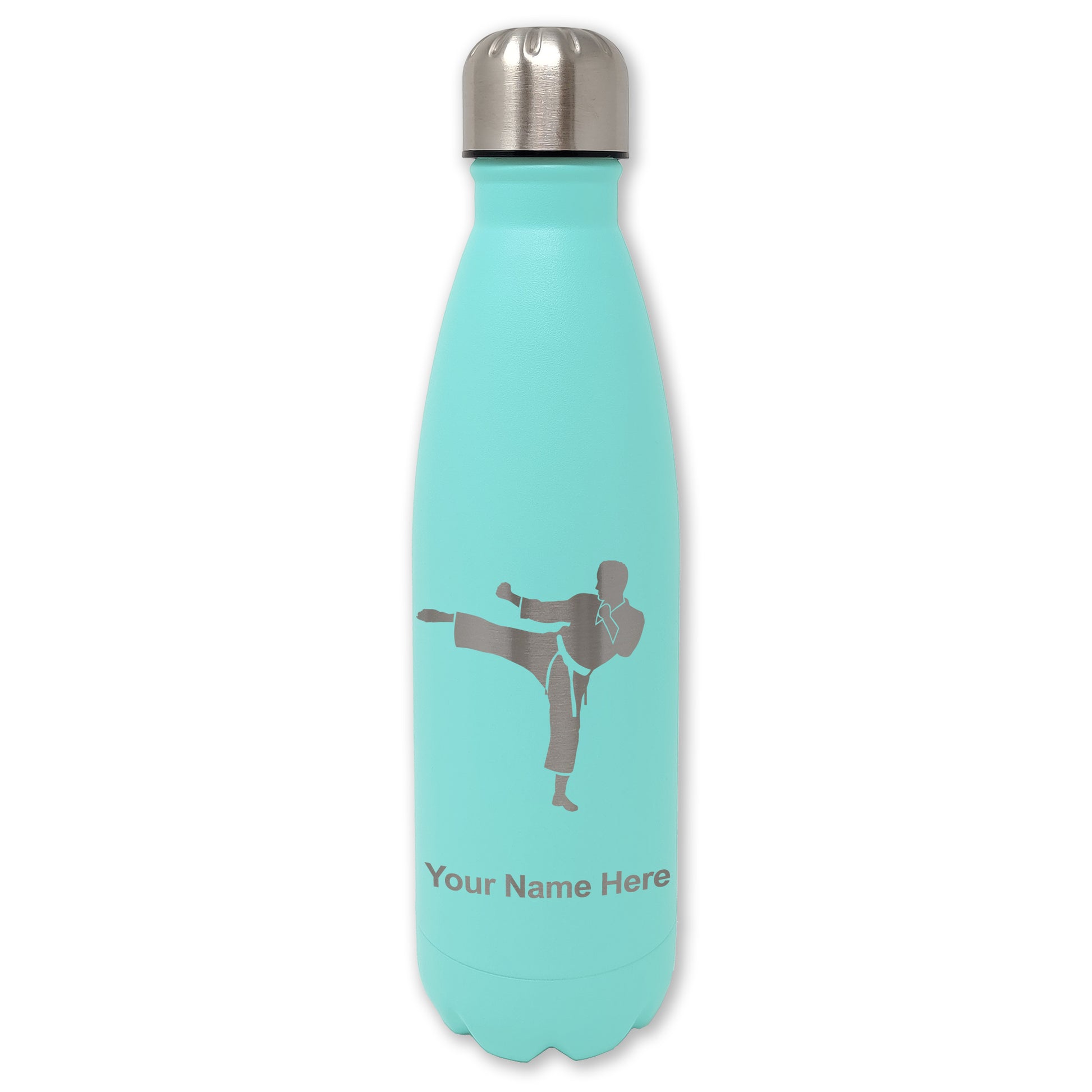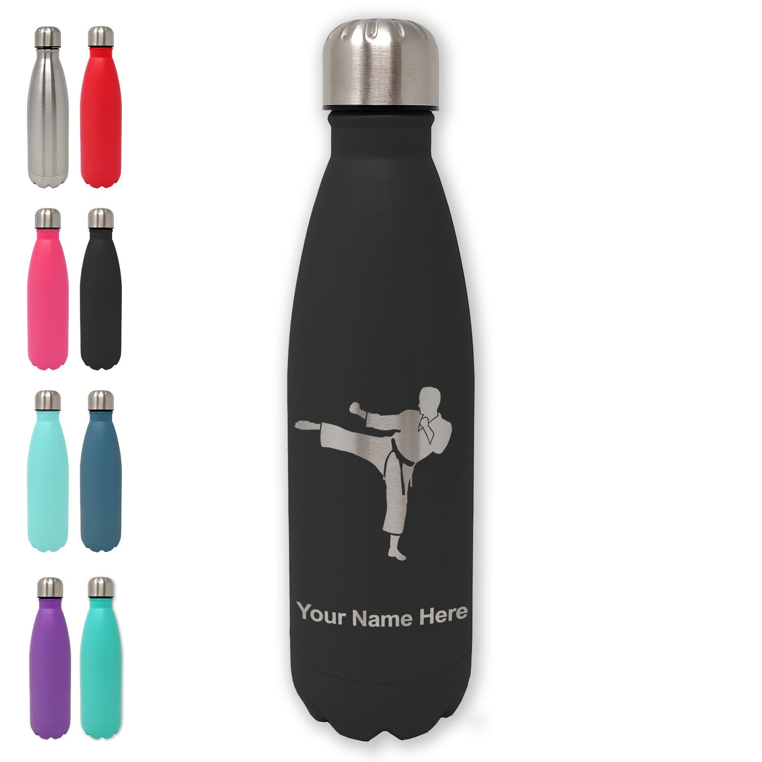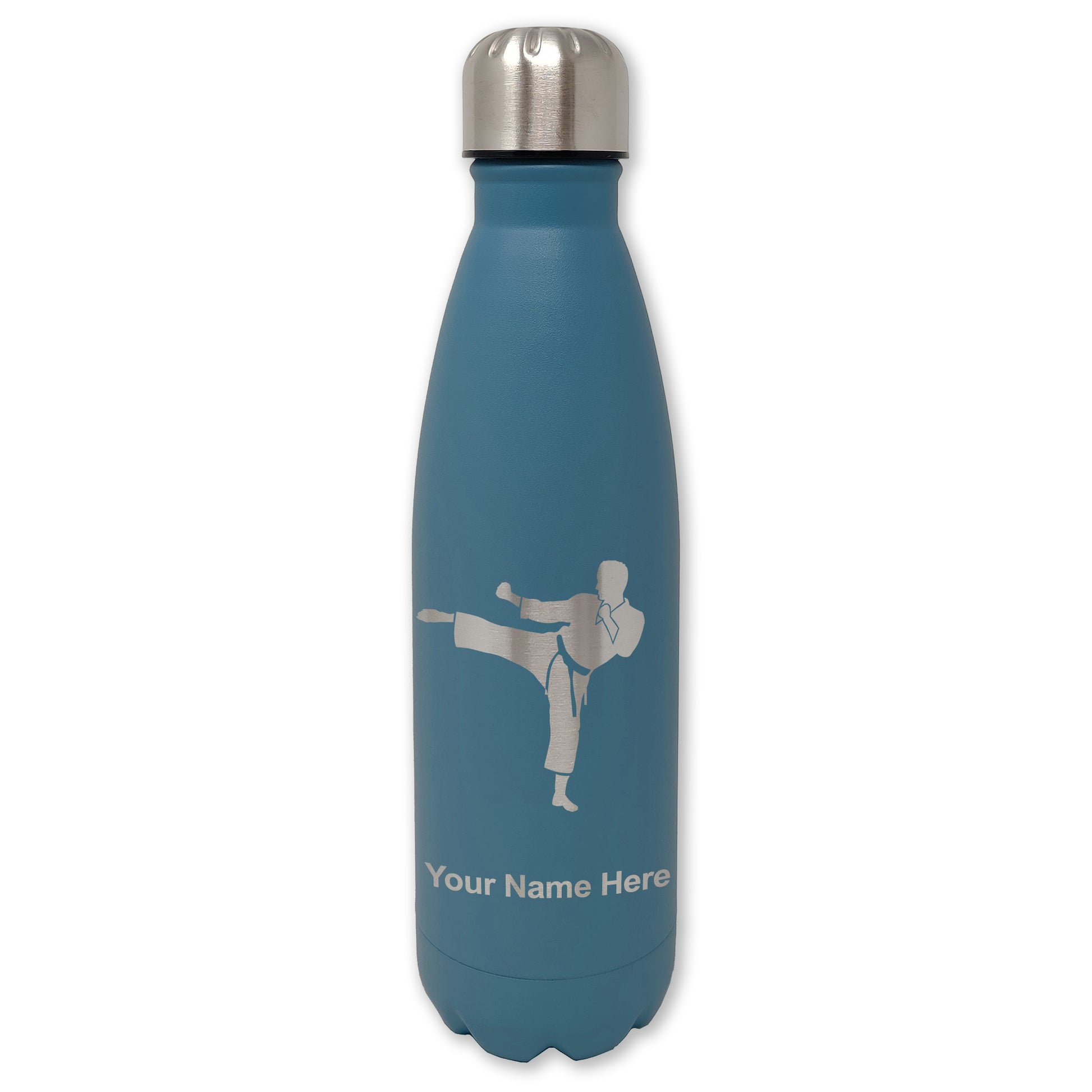 LaserGram Double Wall Water Bottle, Karate Man, Personalized Engraving Included