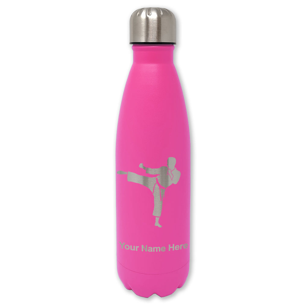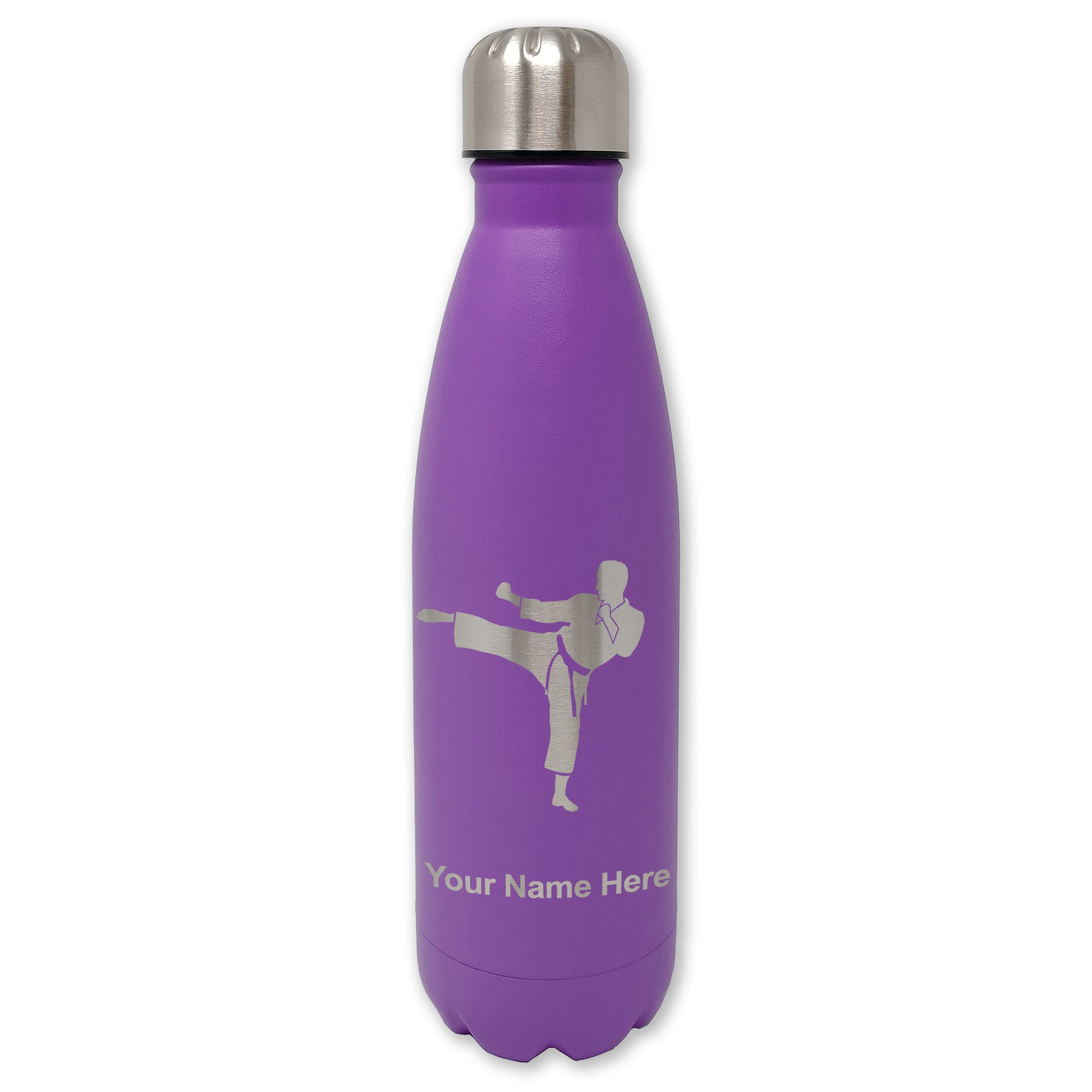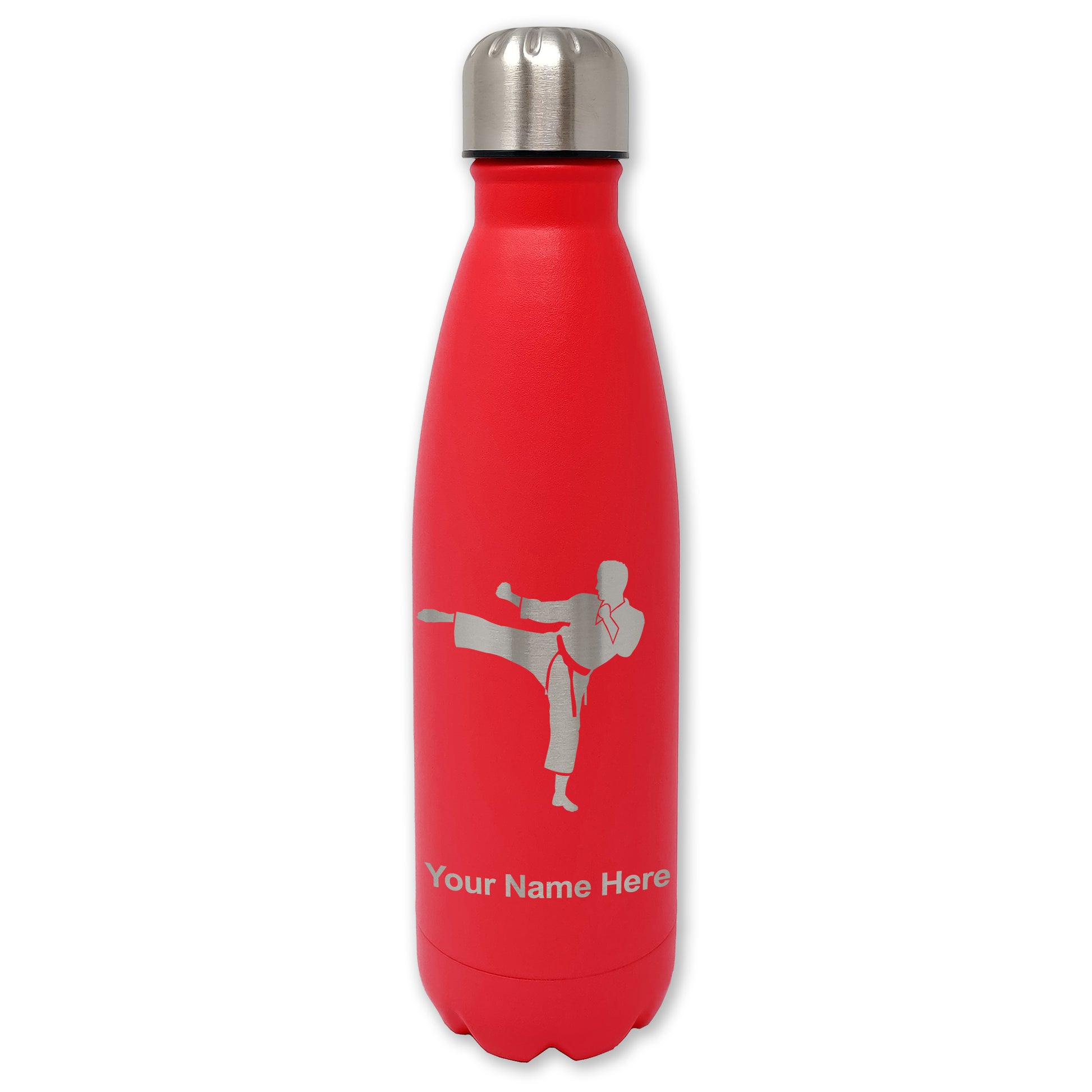 LaserGram Double Wall Water Bottle, Karate Man, Personalized Engraving Included