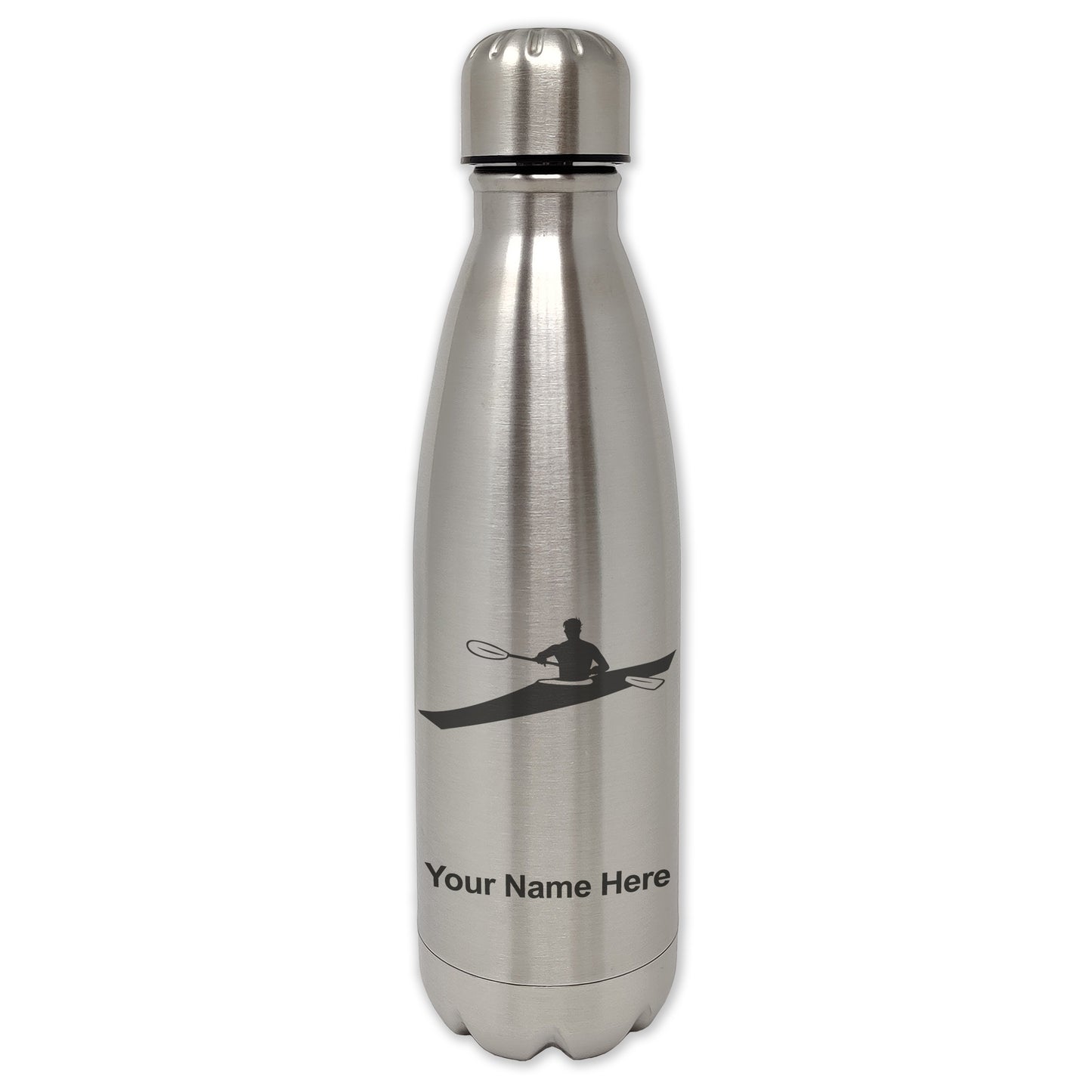 LaserGram Double Wall Water Bottle, Kayak Man, Personalized Engraving Included