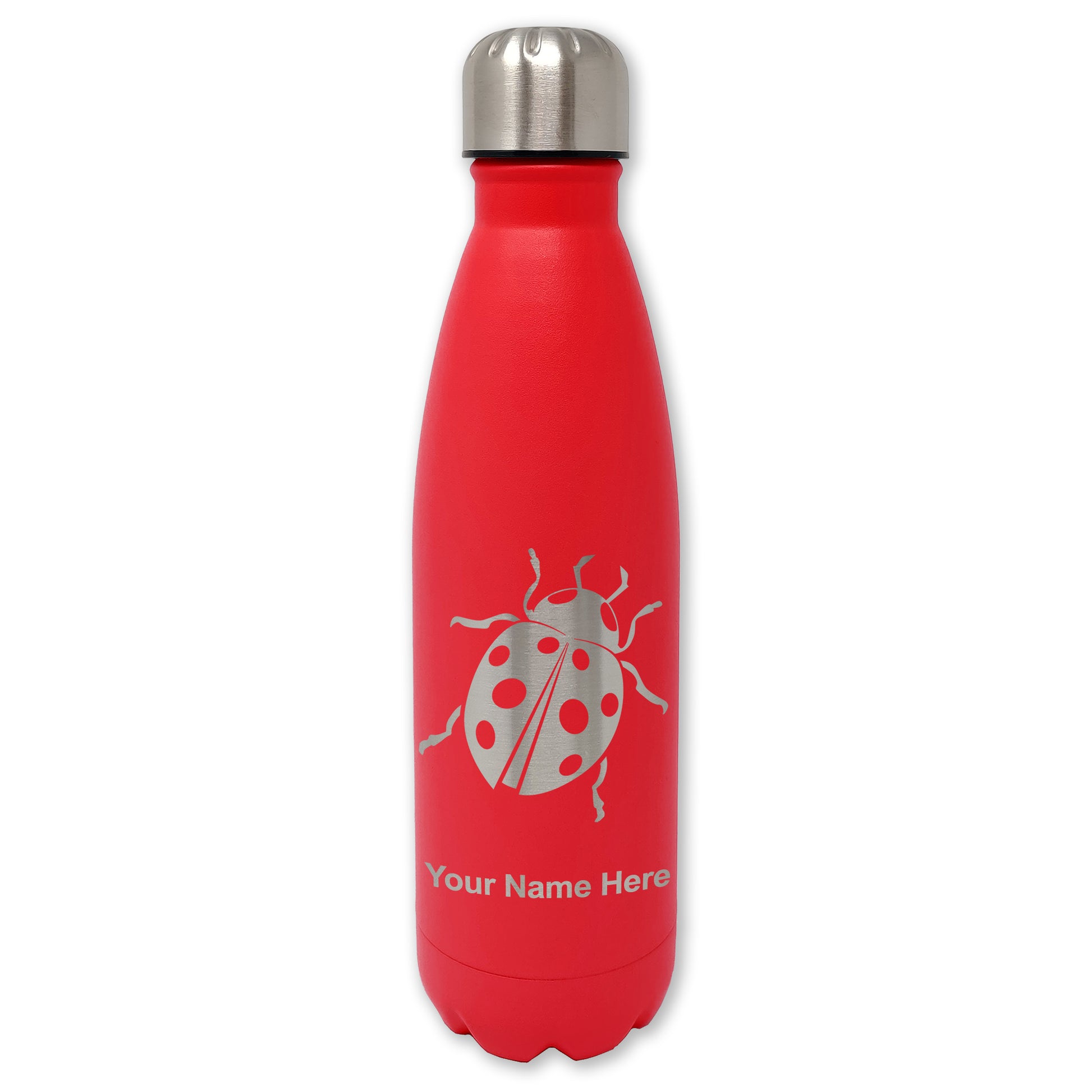 LaserGram Double Wall Water Bottle, Ladybug, Personalized Engraving Included