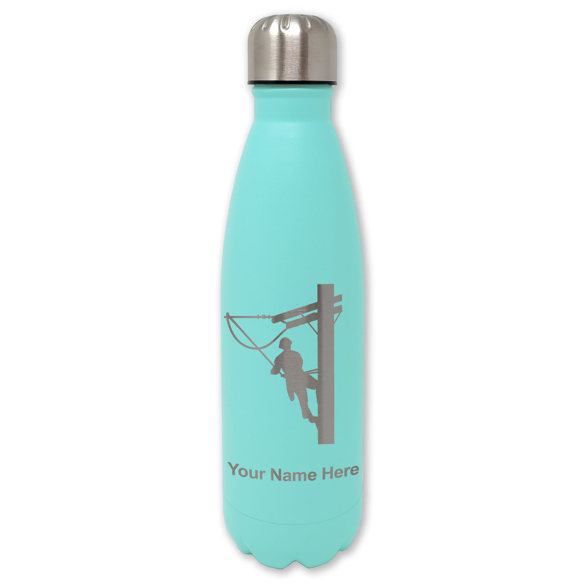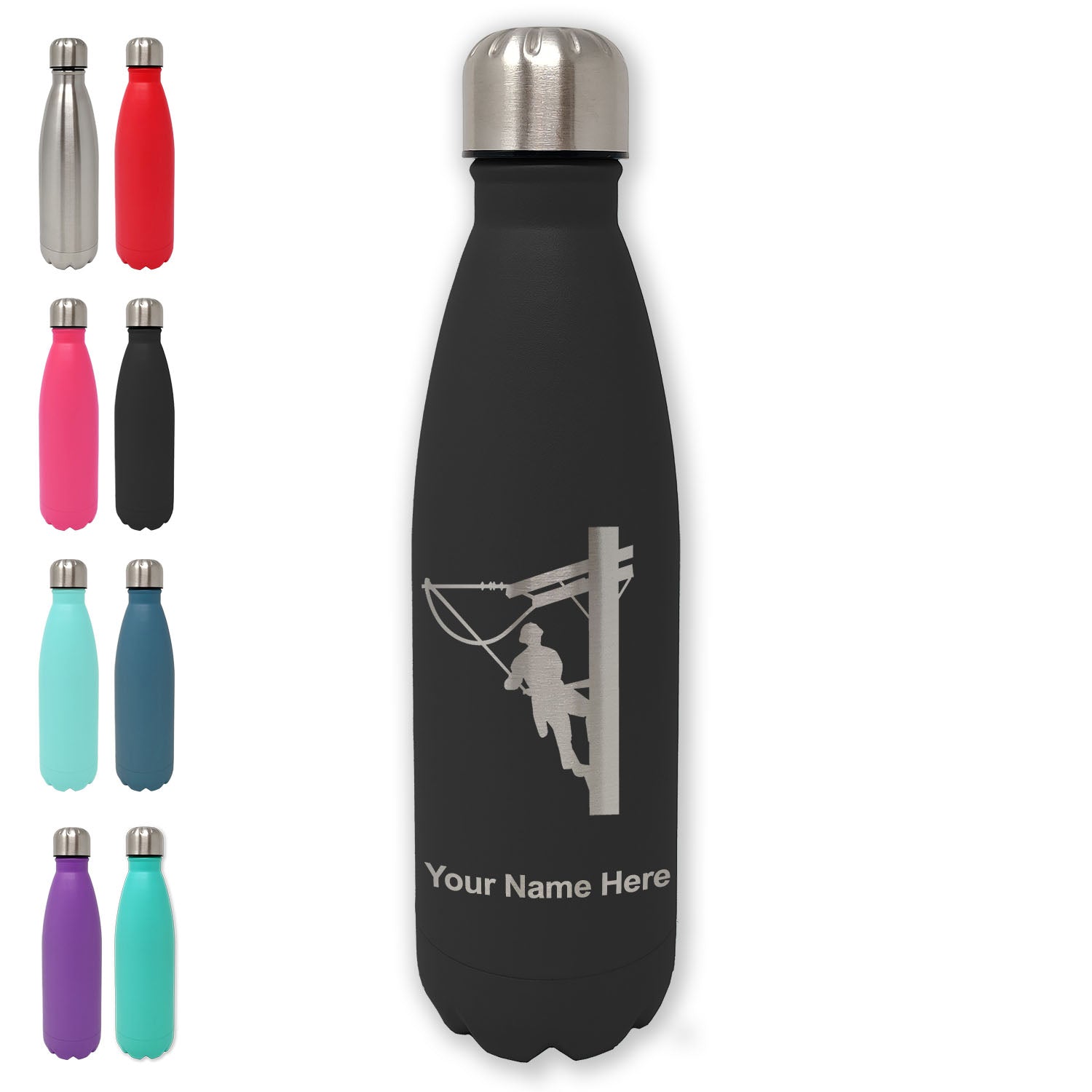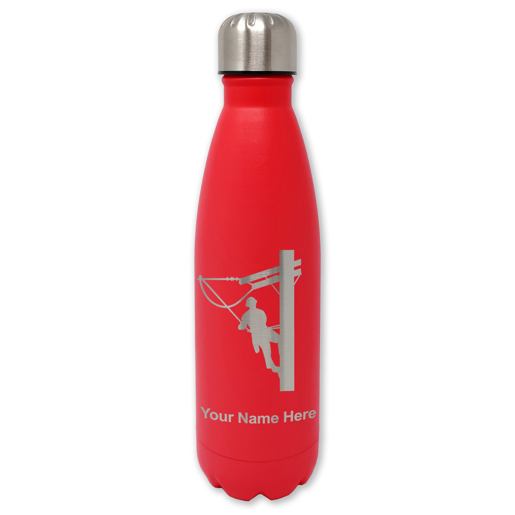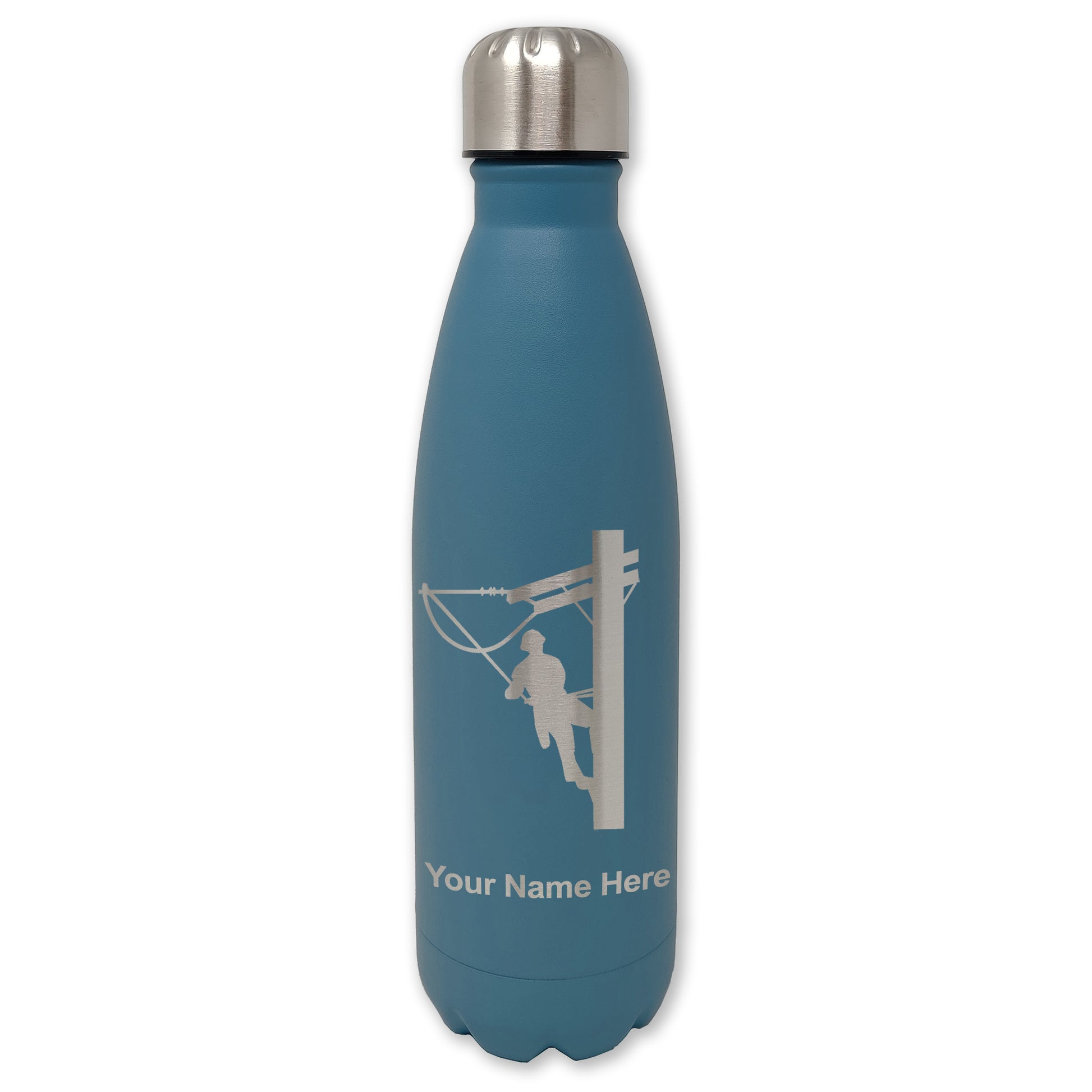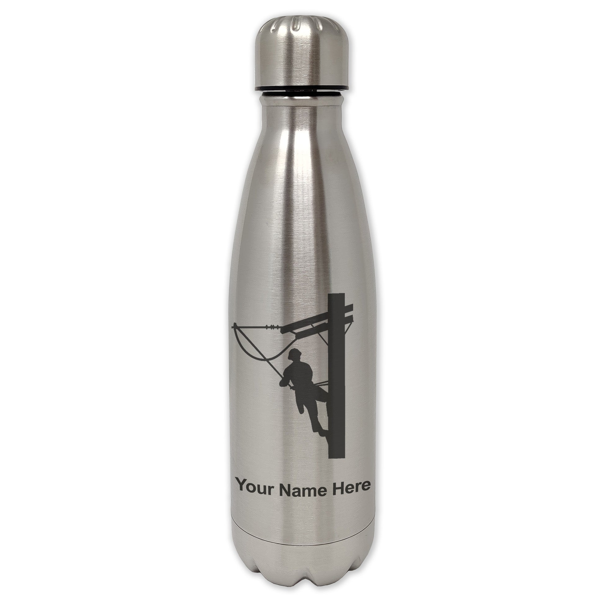 LaserGram Double Wall Water Bottle, Lineman, Personalized Engraving Included