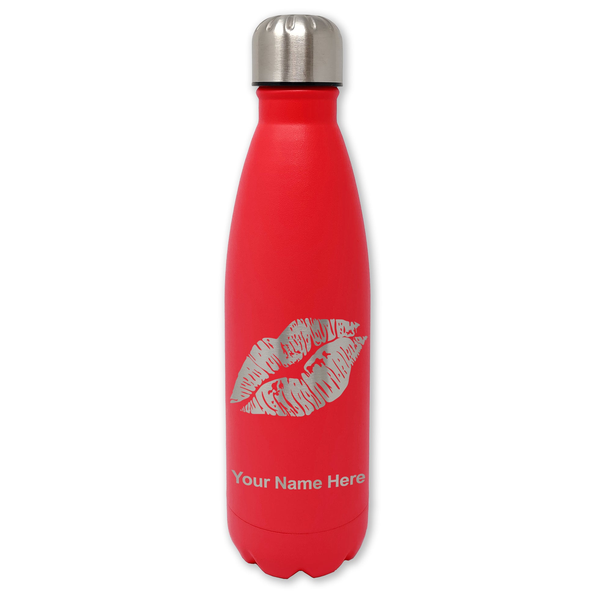 LaserGram Double Wall Water Bottle, Lipstick Kiss, Personalized Engraving Included