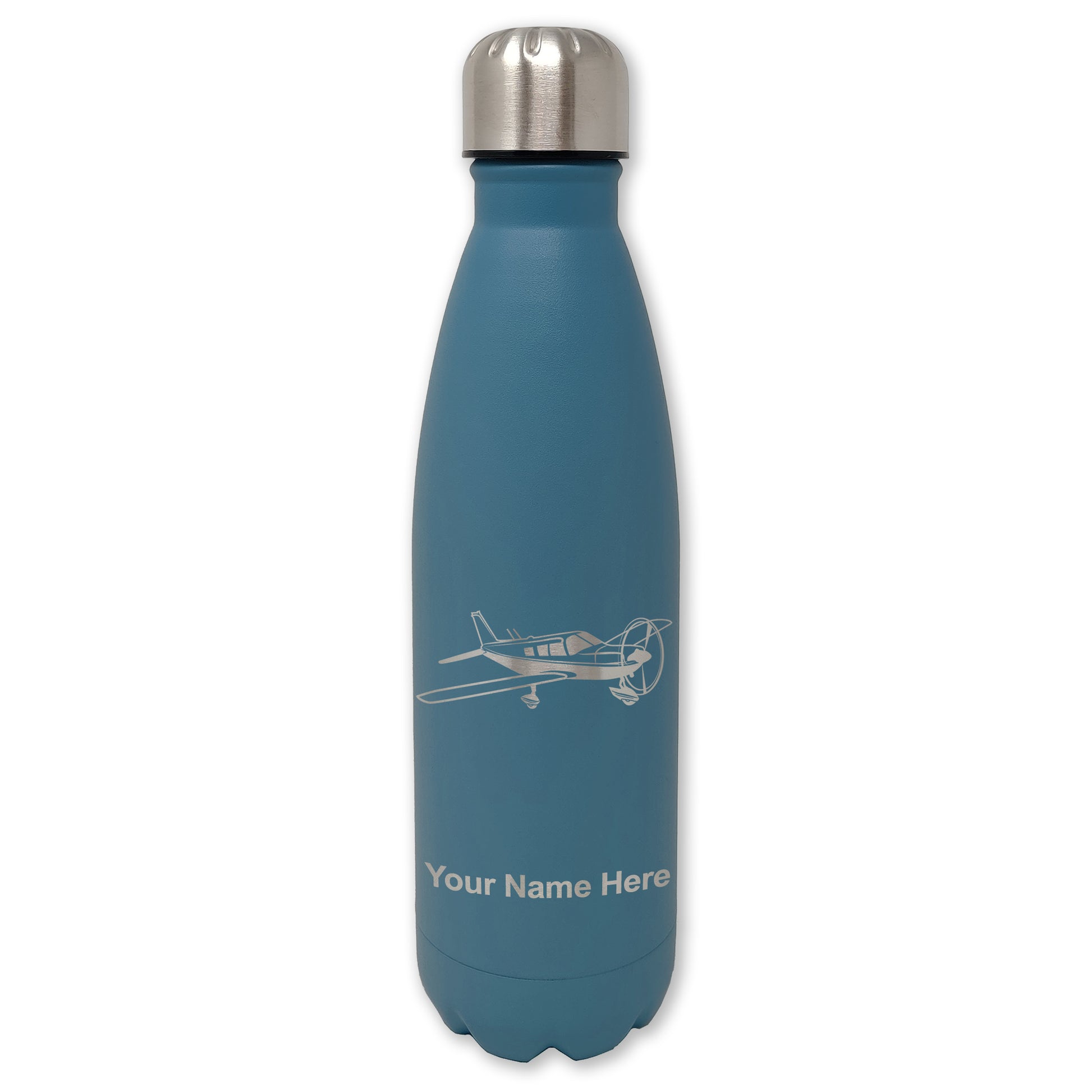LaserGram Double Wall Water Bottle, Low Wing Airplane, Personalized Engraving Included