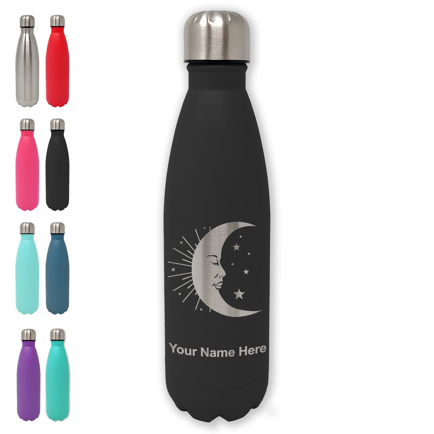 LaserGram Double Wall Water Bottle, Moon, Personalized Engraving Included