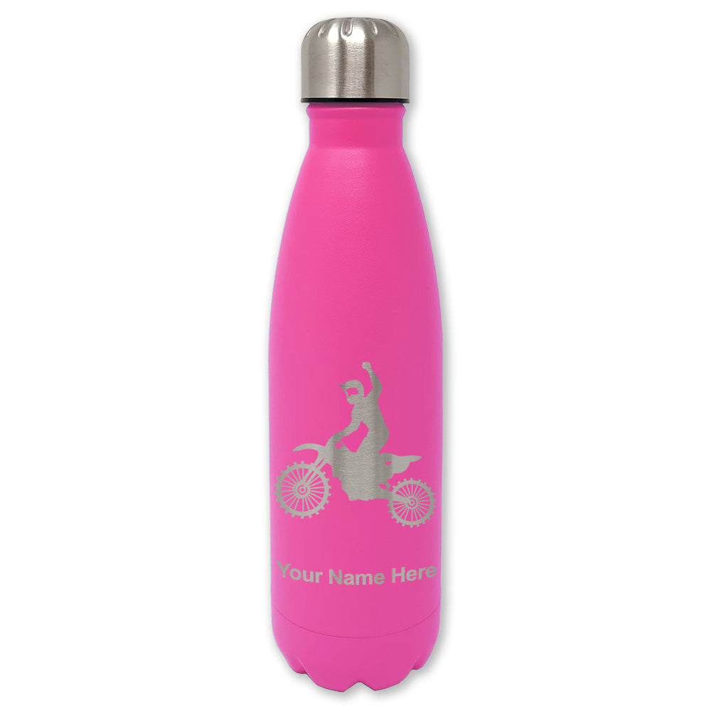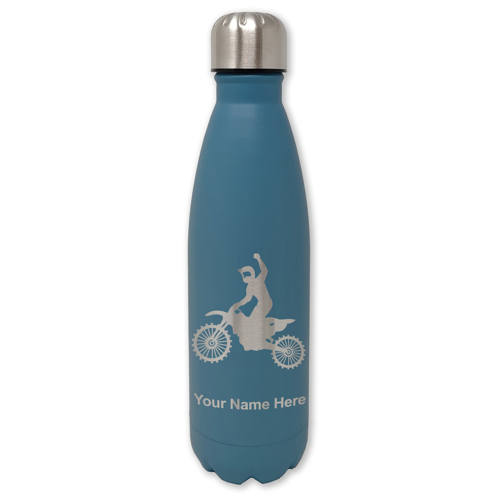 LaserGram Double Wall Water Bottle, Motocross, Personalized Engraving Included