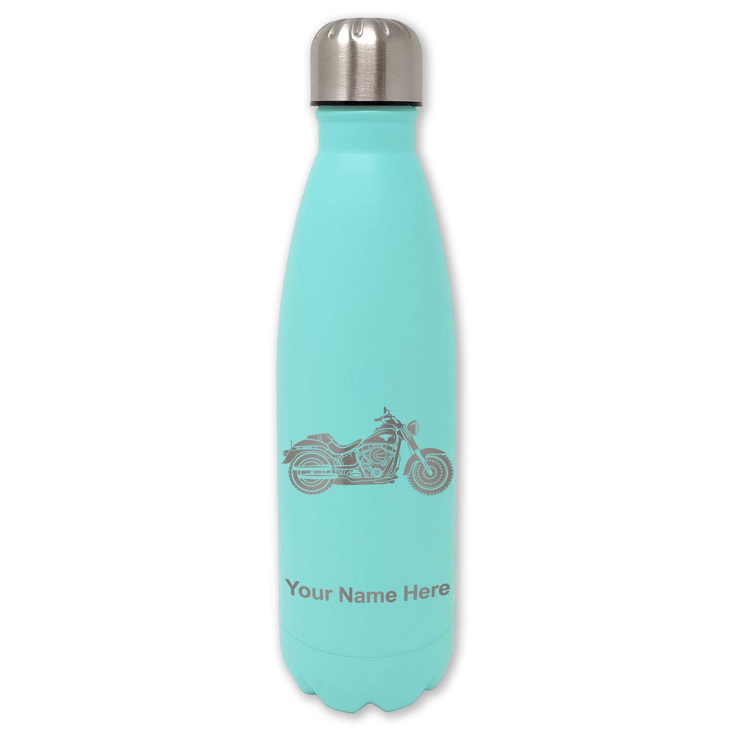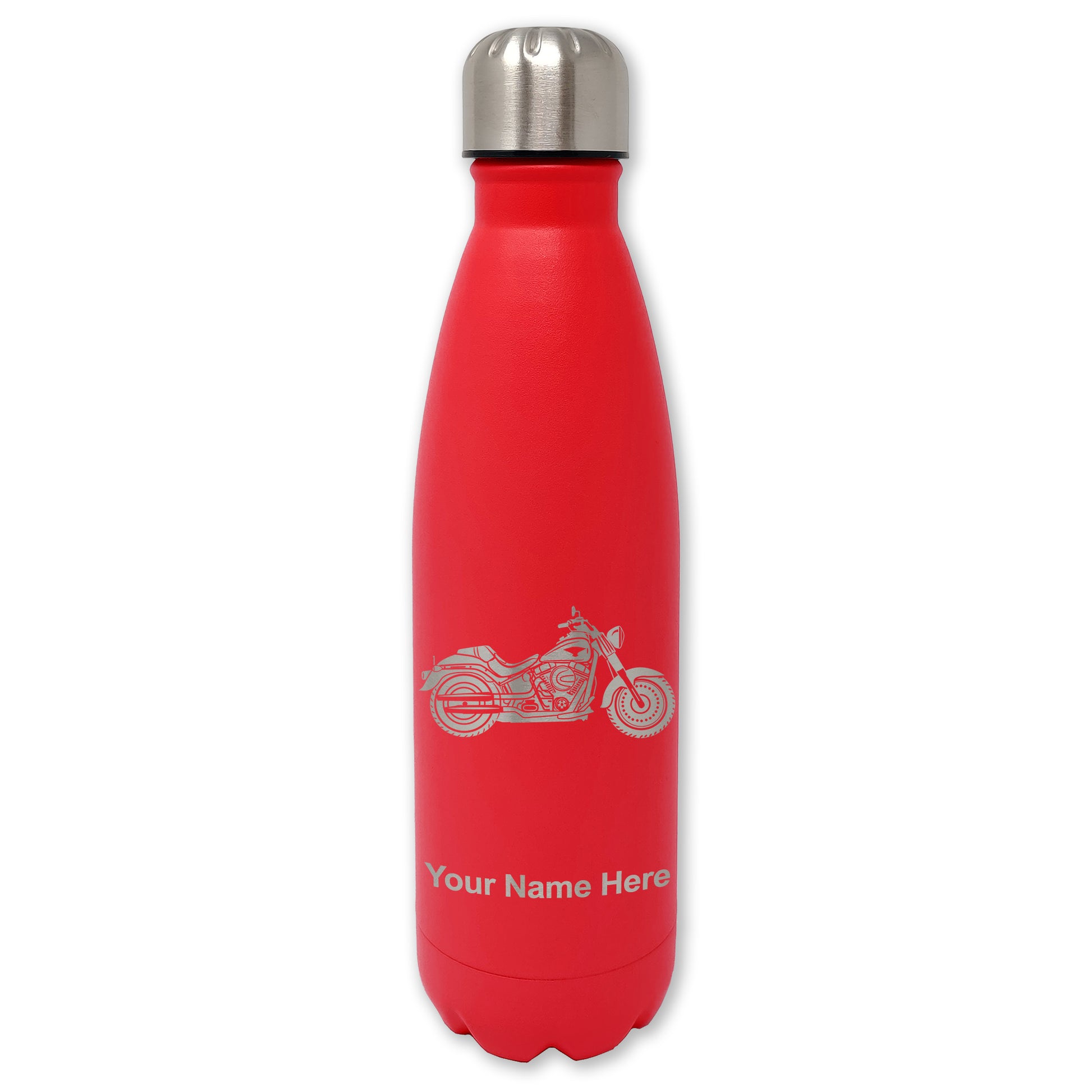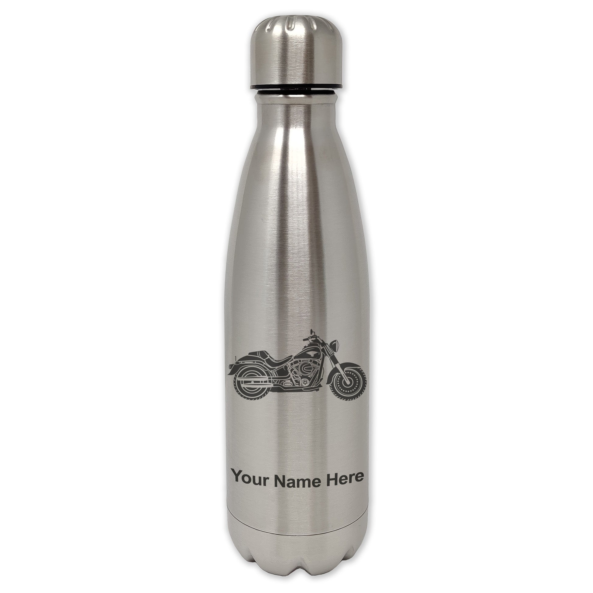 LaserGram Double Wall Water Bottle, Motorcycle, Personalized Engraving Included