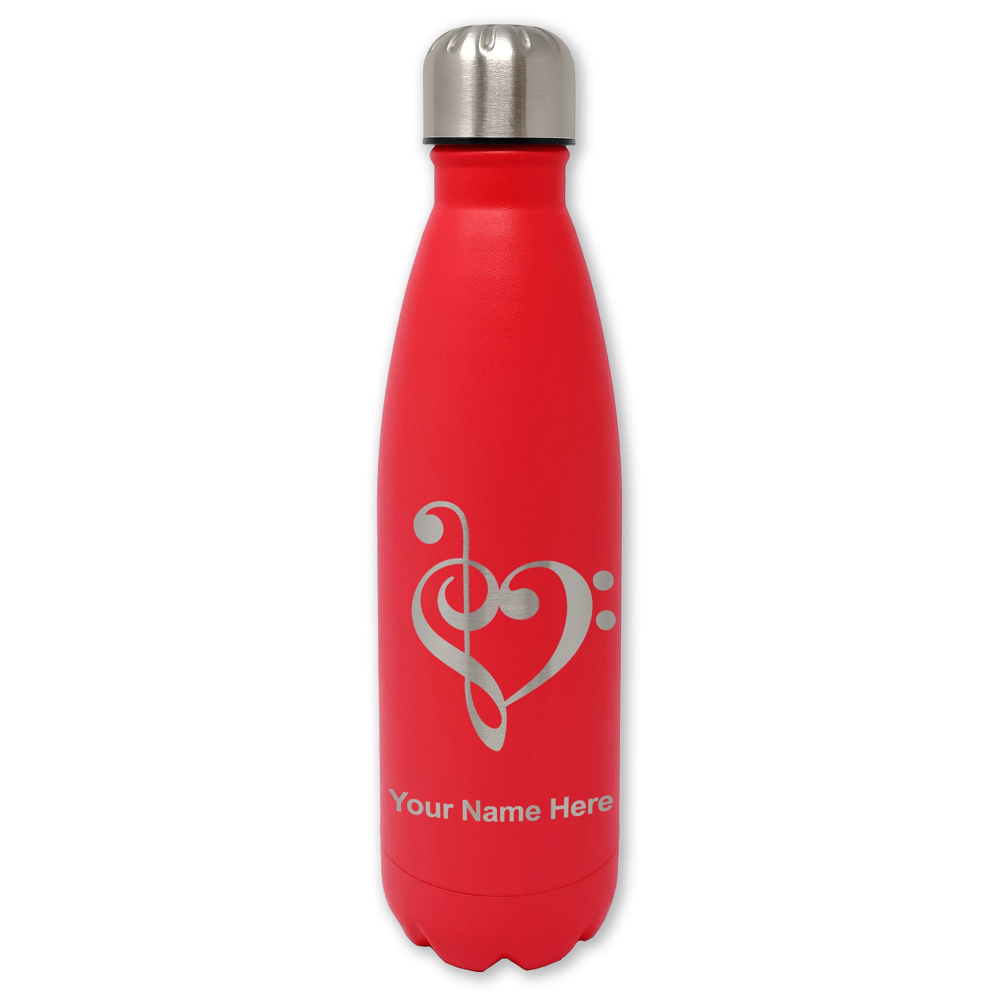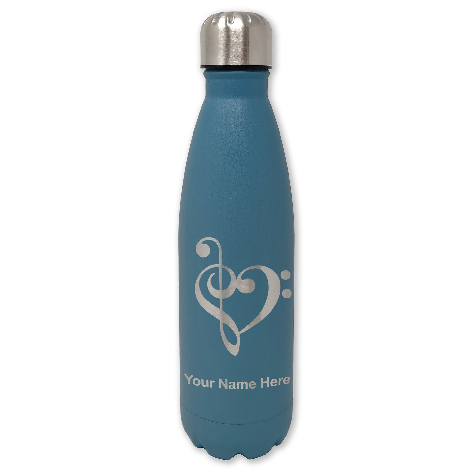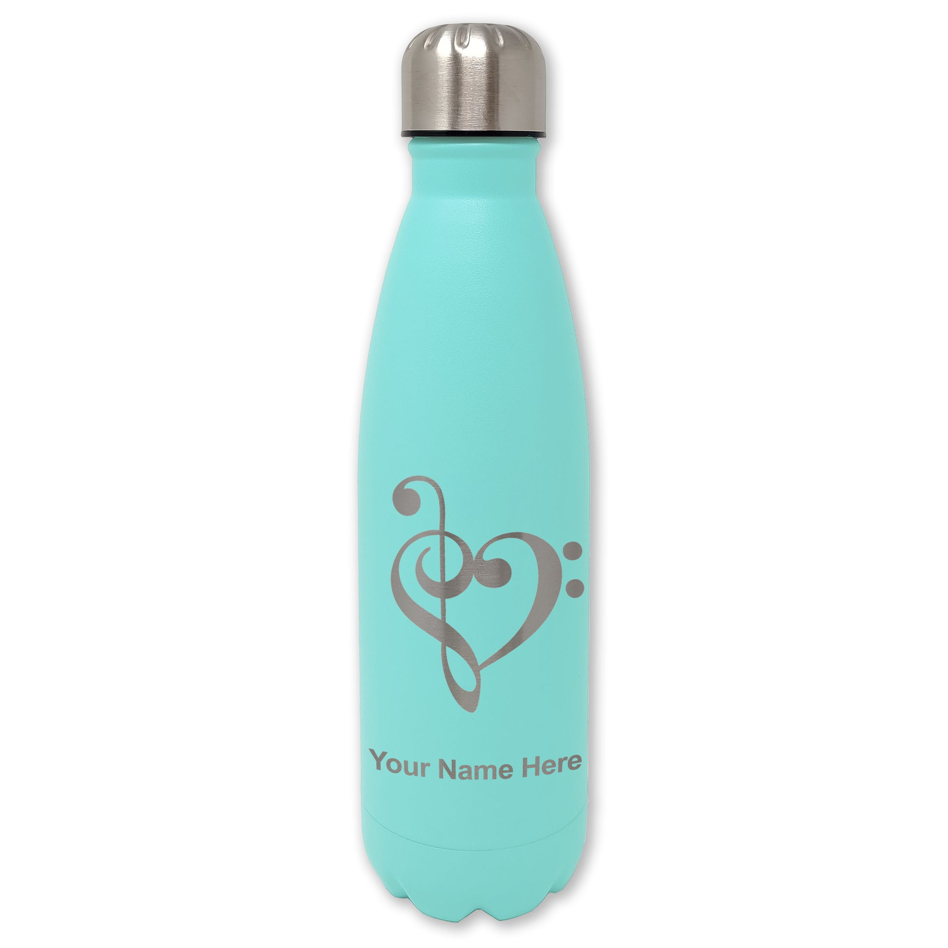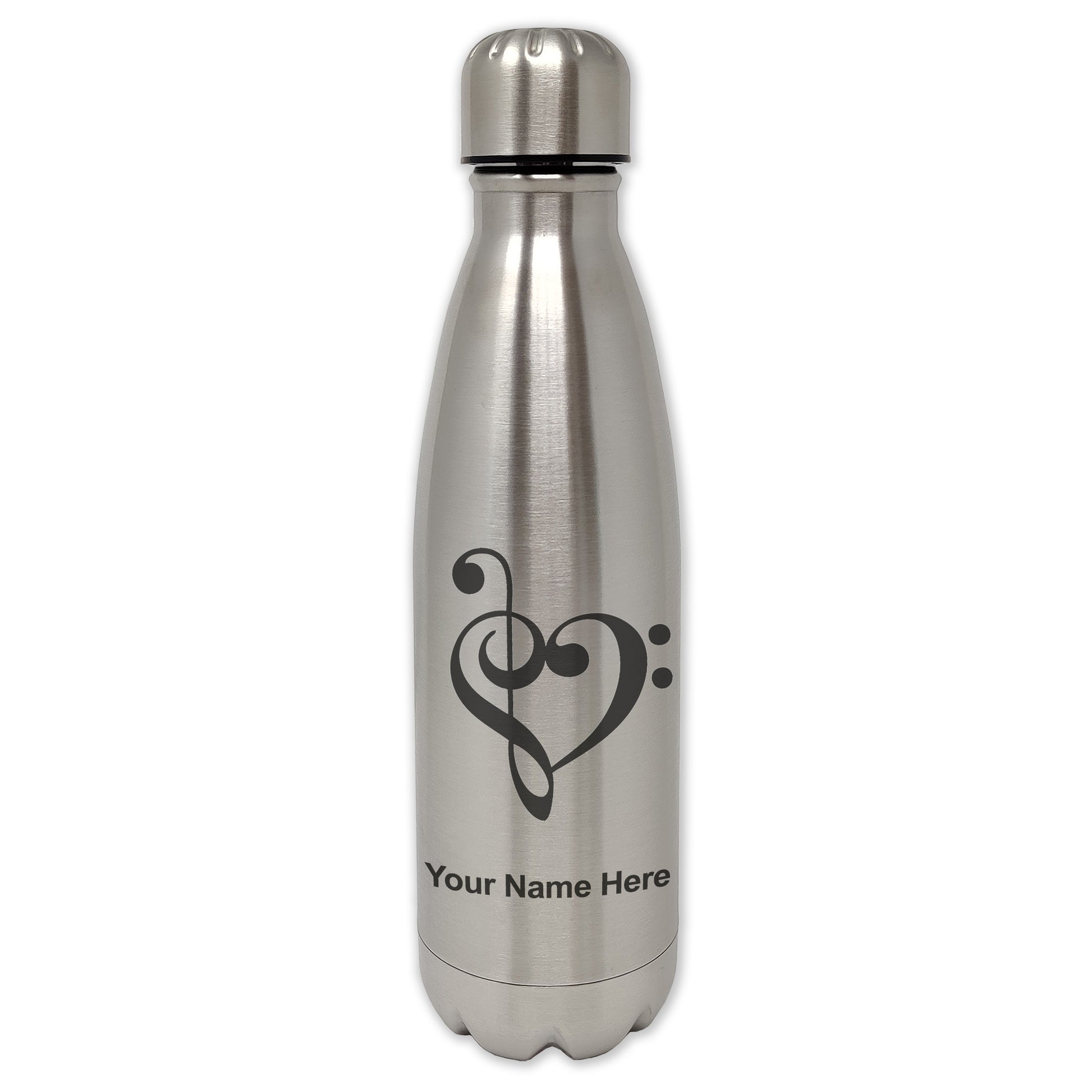 LaserGram Double Wall Water Bottle, Music Heart, Personalized Engraving Included