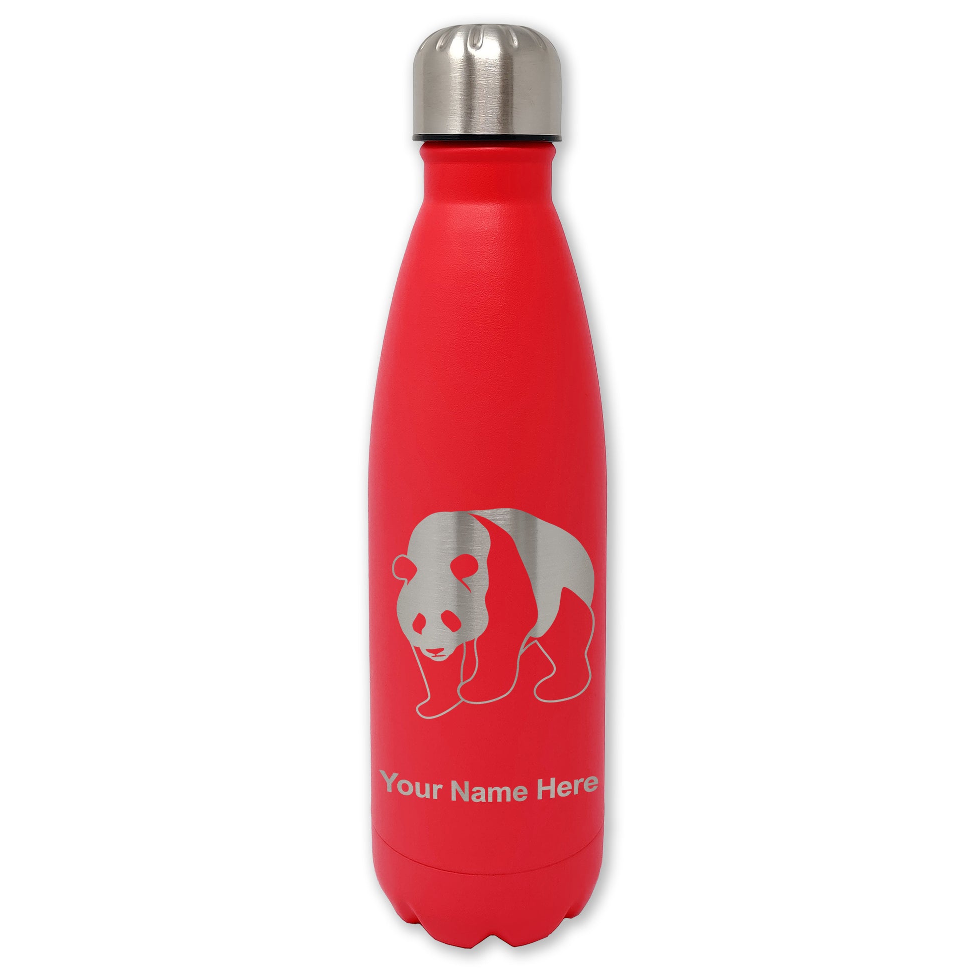 LaserGram Double Wall Water Bottle, Panda Bear, Personalized Engraving Included