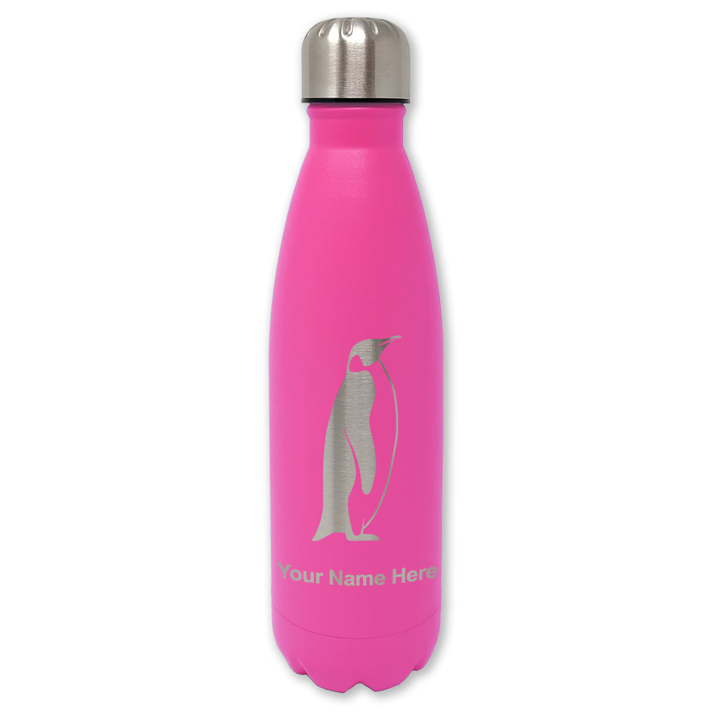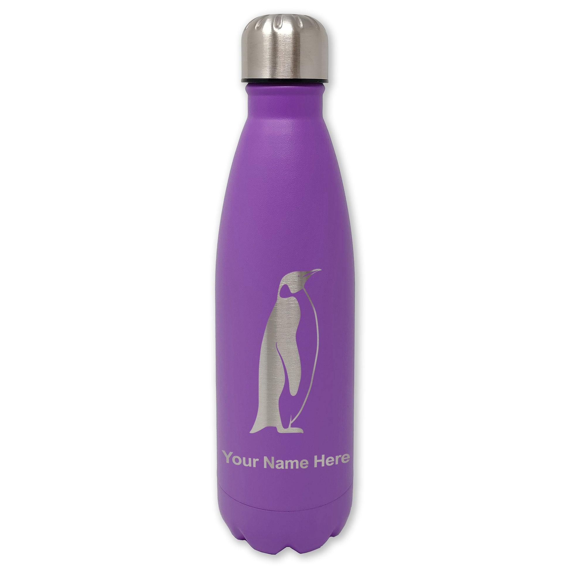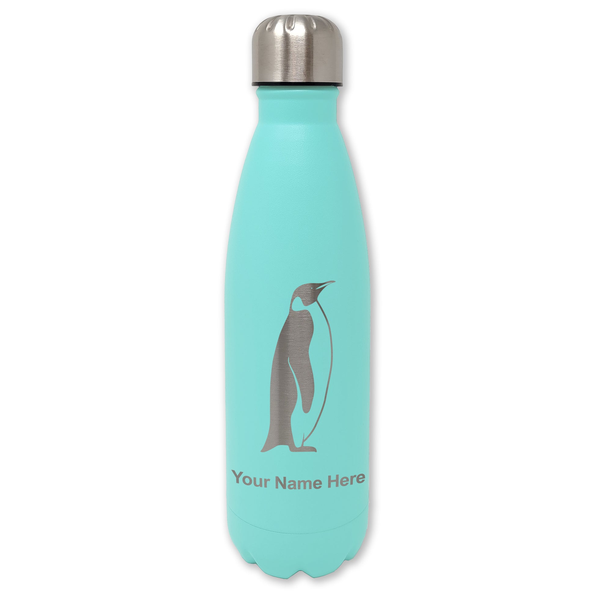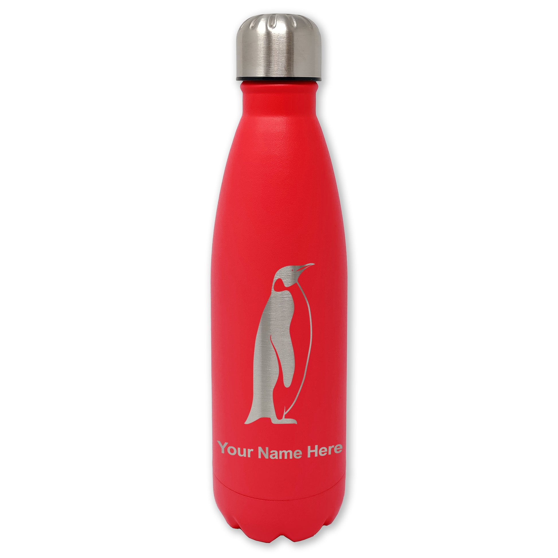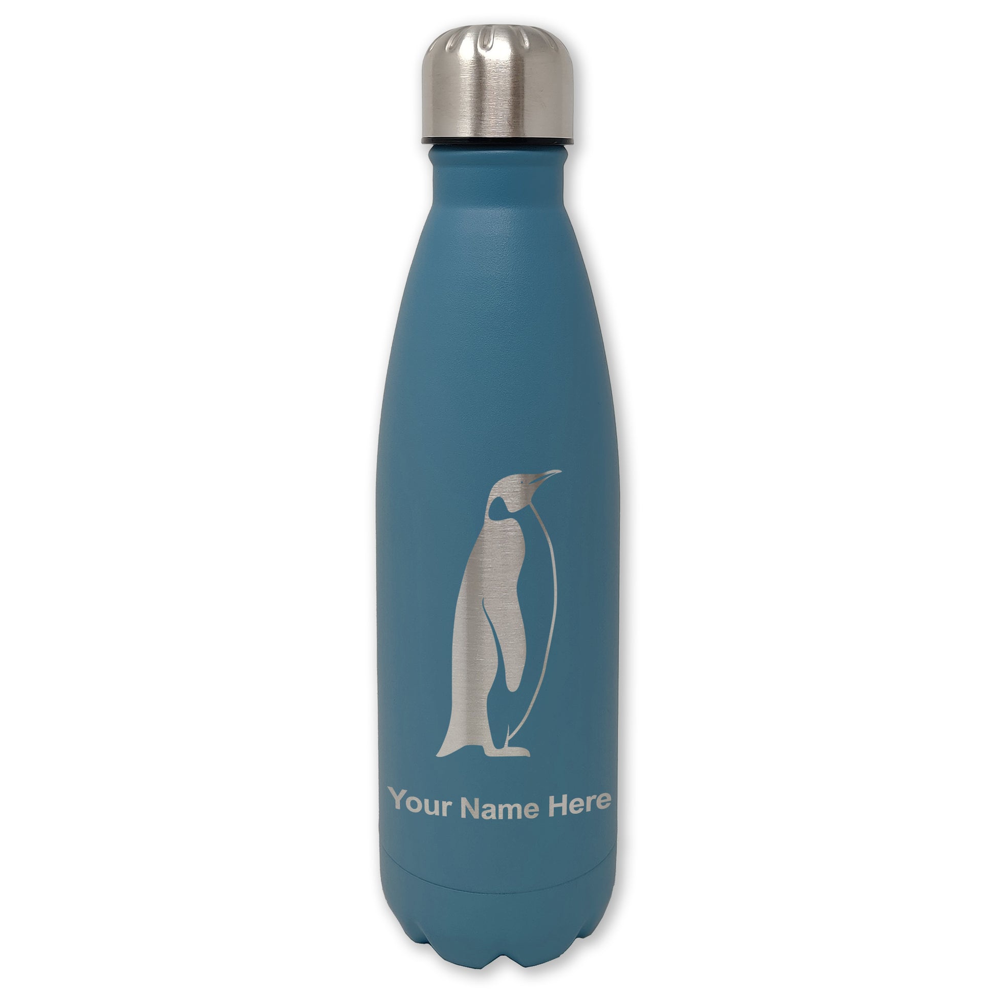 LaserGram Double Wall Water Bottle, Penguin, Personalized Engraving Included
