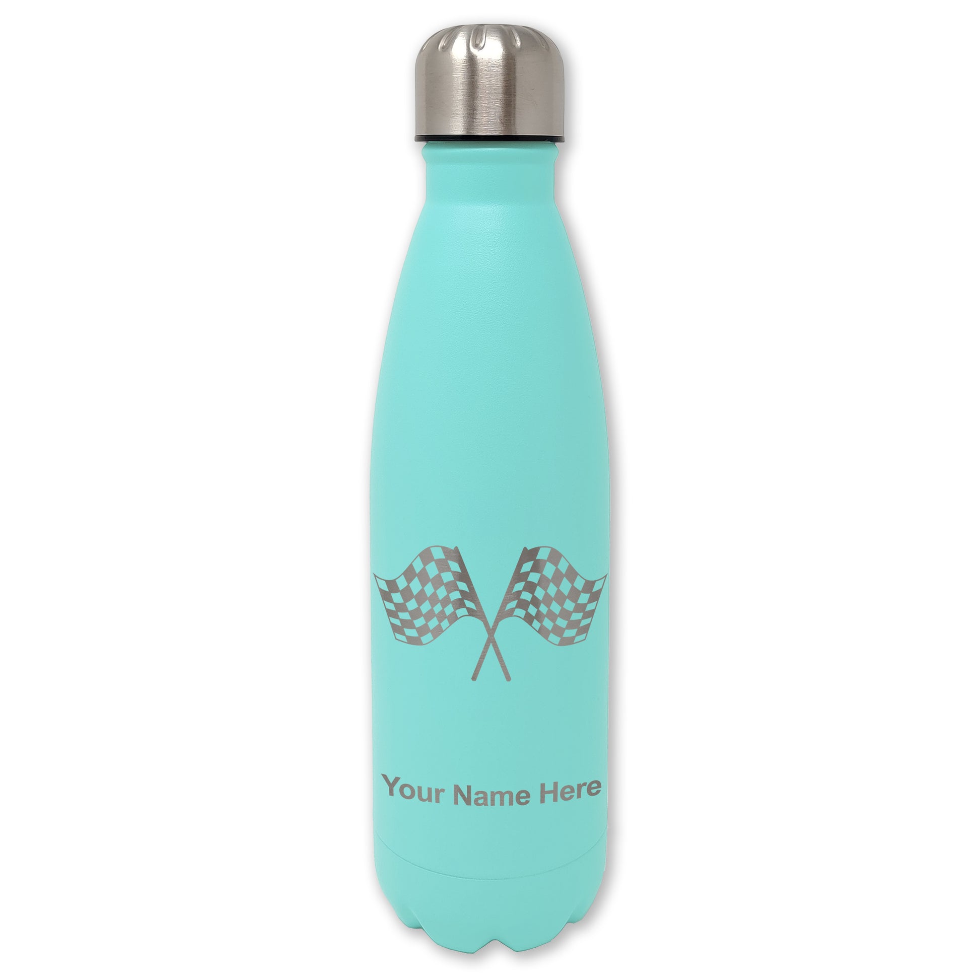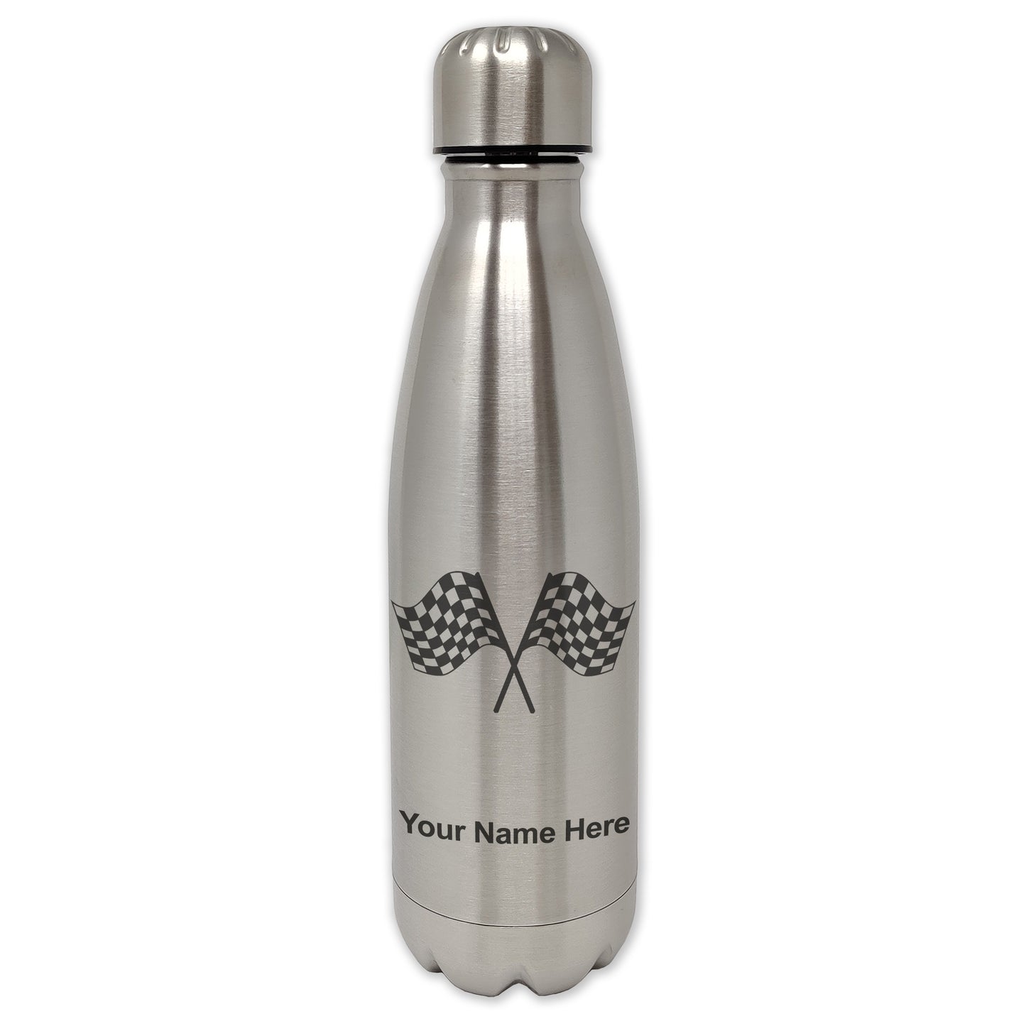 LaserGram Double Wall Water Bottle, Racing Flags, Personalized Engraving Included
