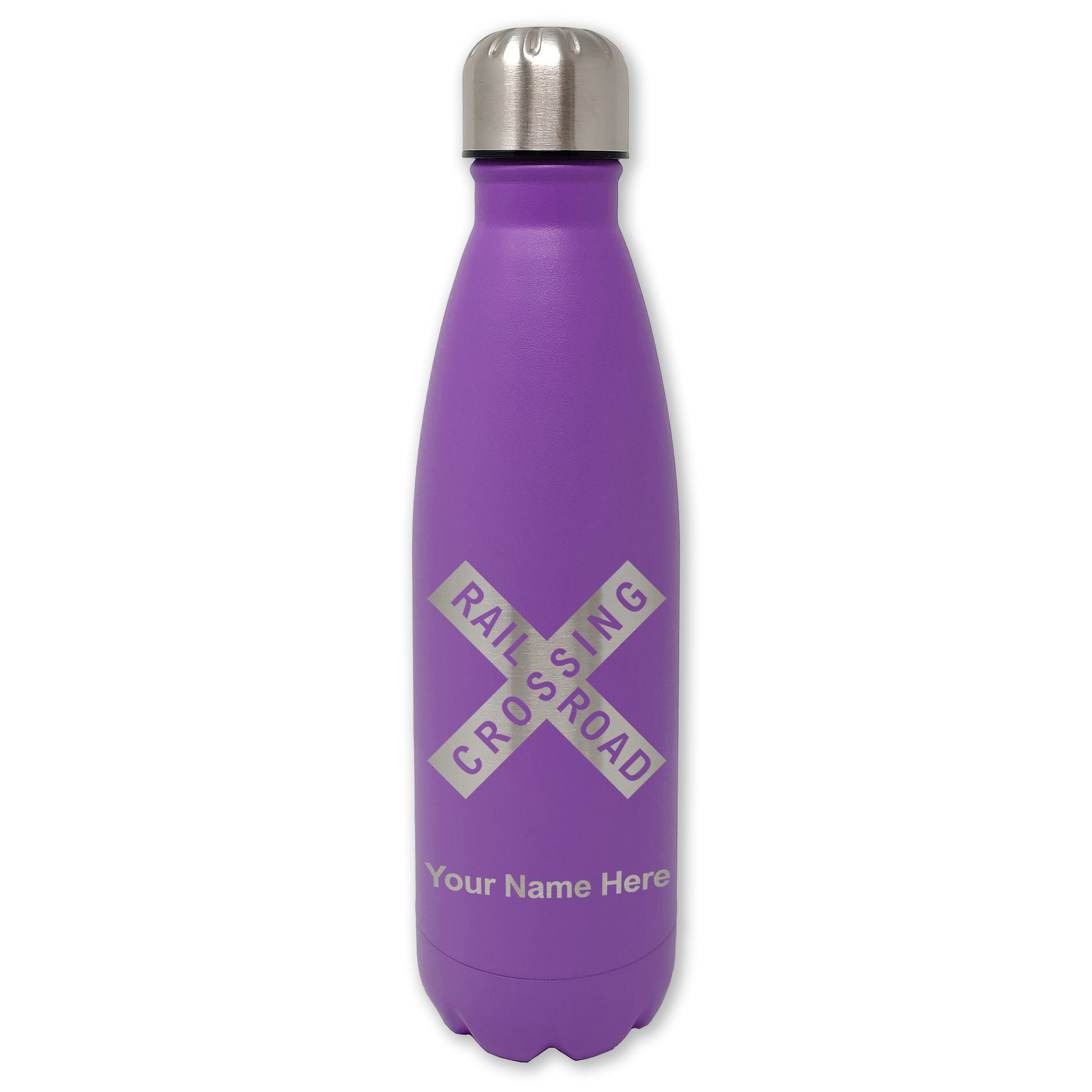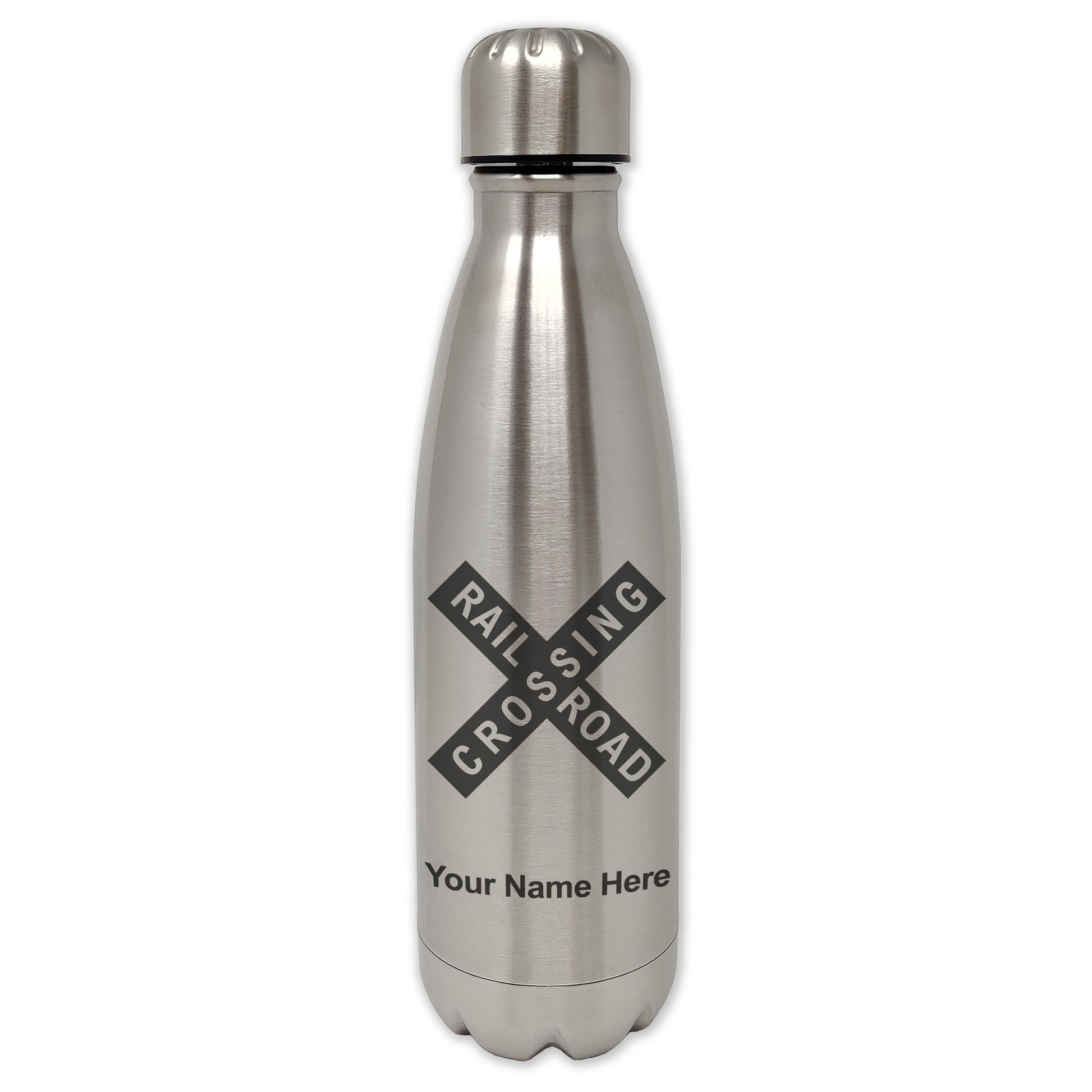 LaserGram Double Wall Water Bottle, Railroad Crossing Sign 1, Personalized Engraving Included
