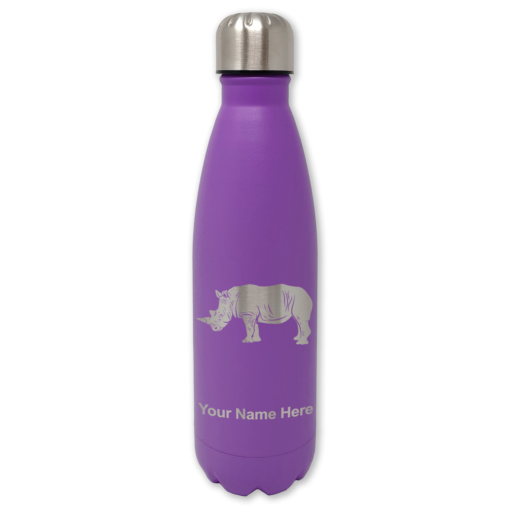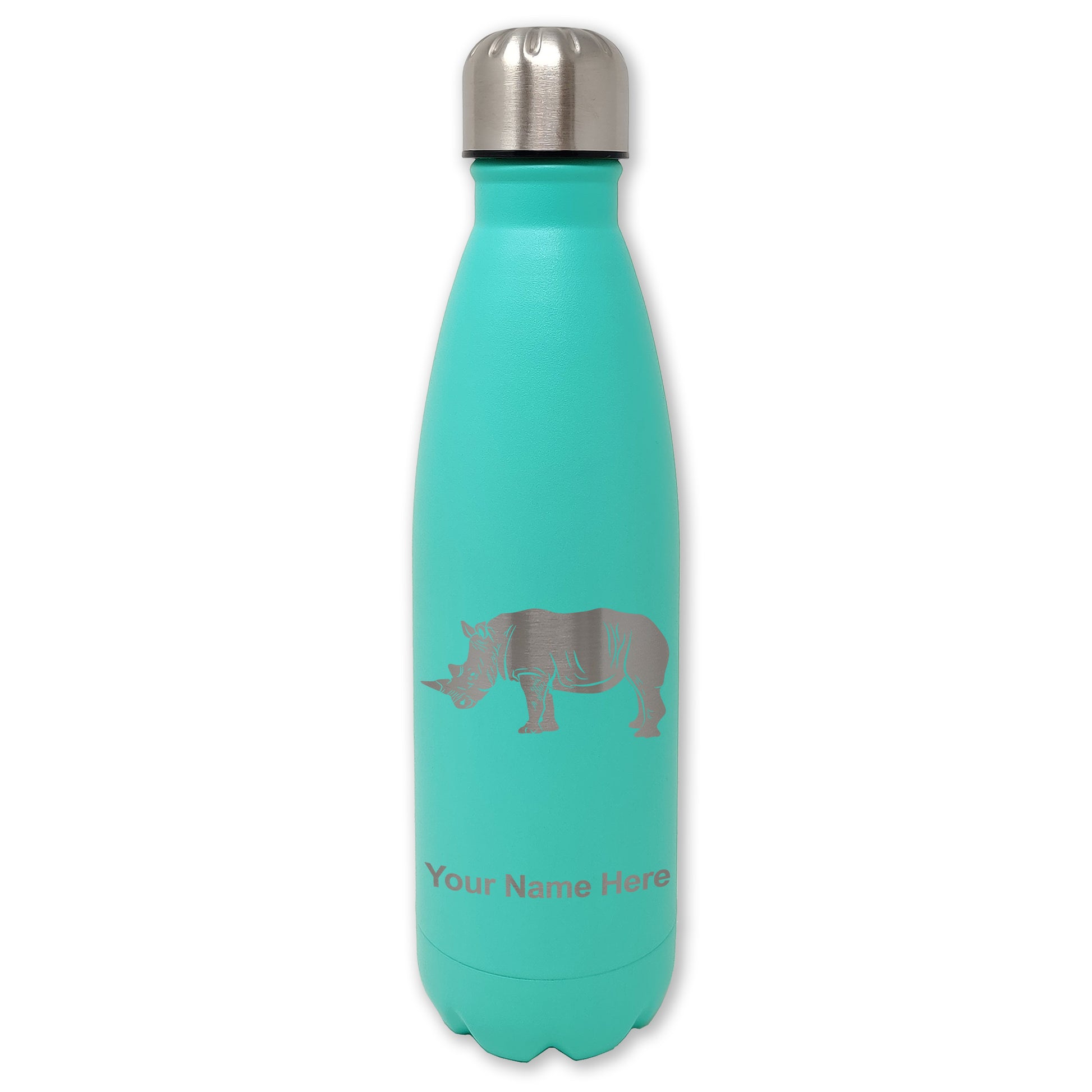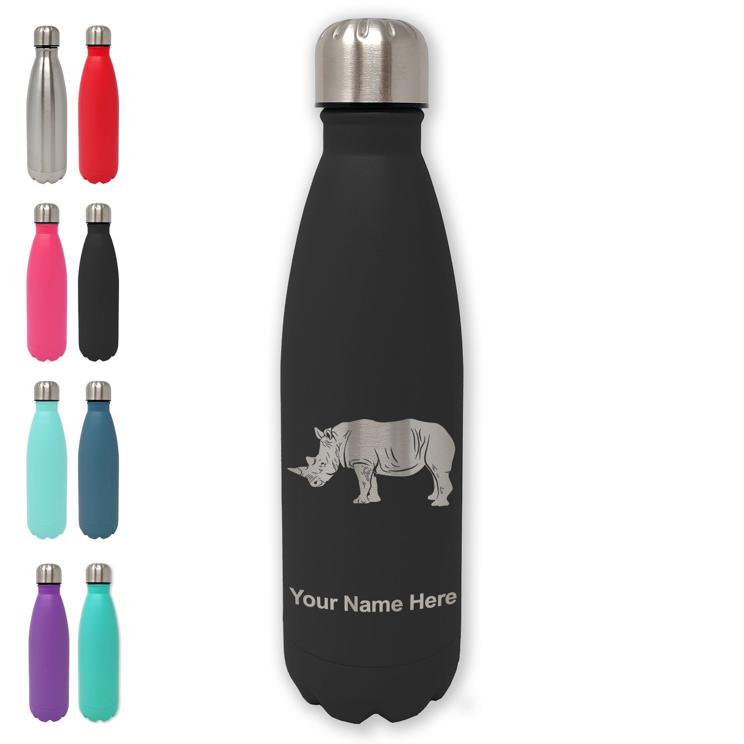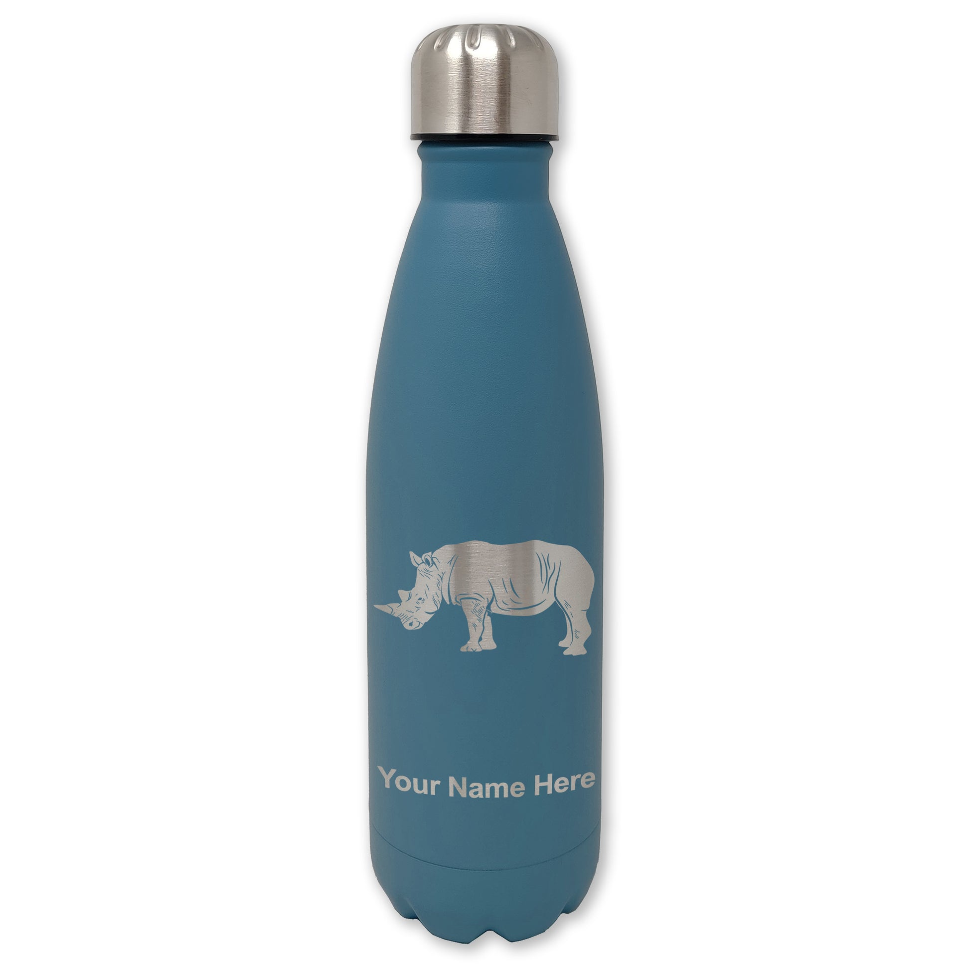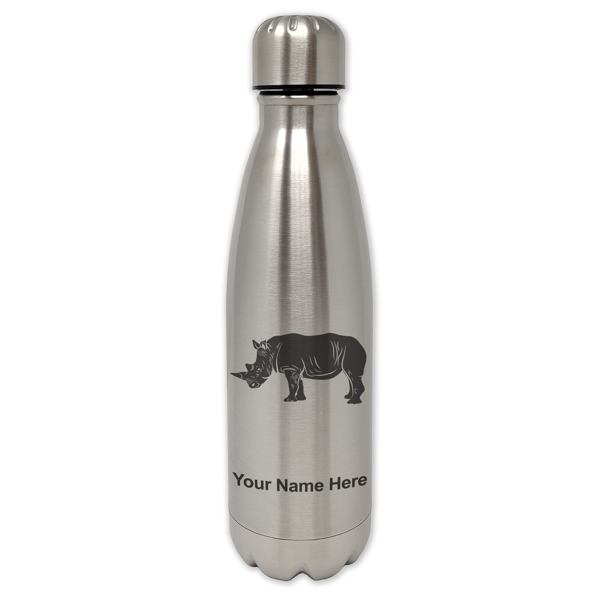 LaserGram Double Wall Water Bottle, Rhinoceros, Personalized Engraving Included