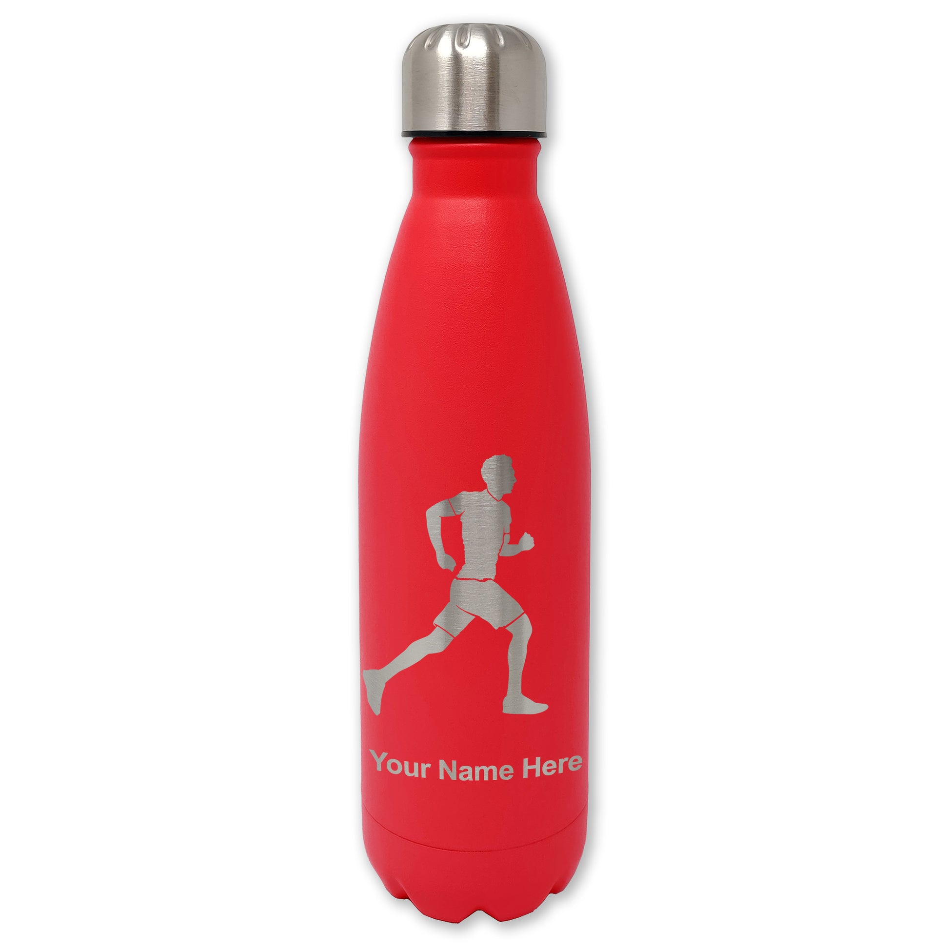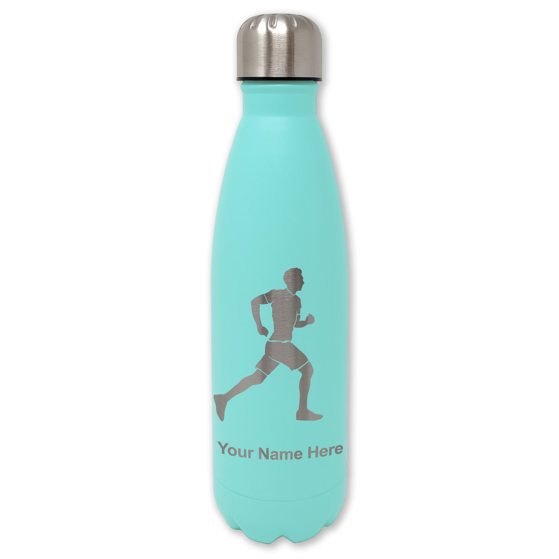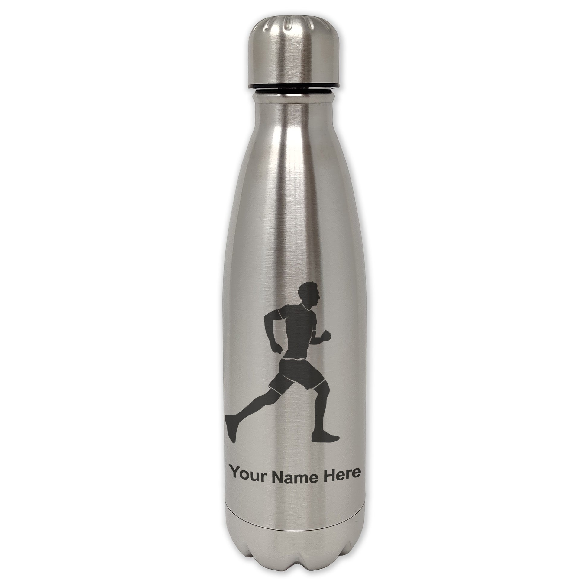 LaserGram Double Wall Water Bottle, Running Man, Personalized Engraving Included