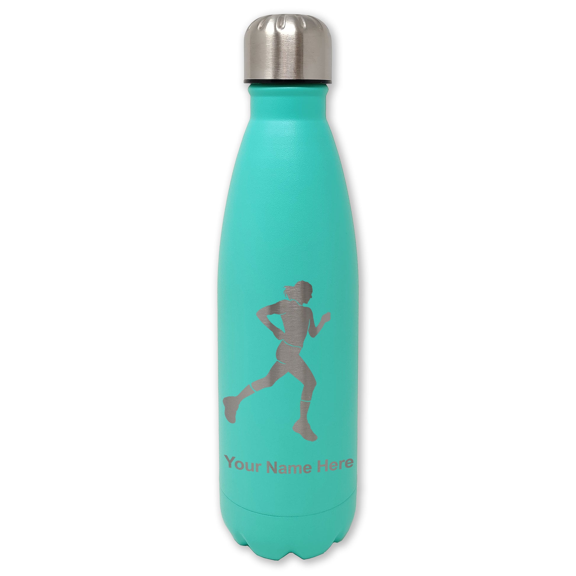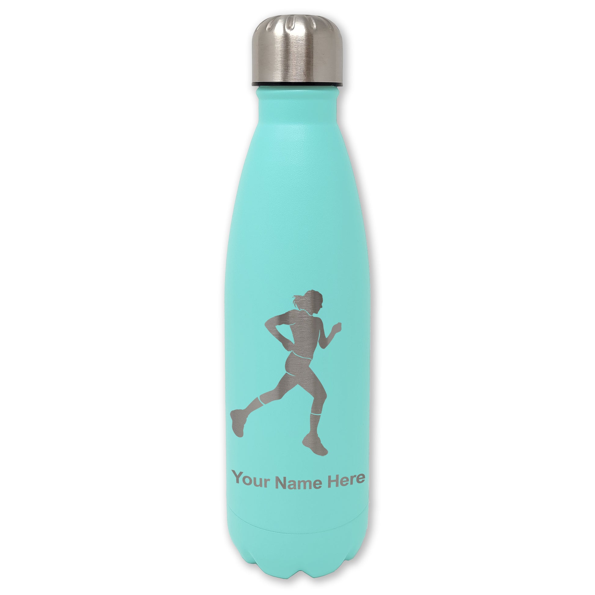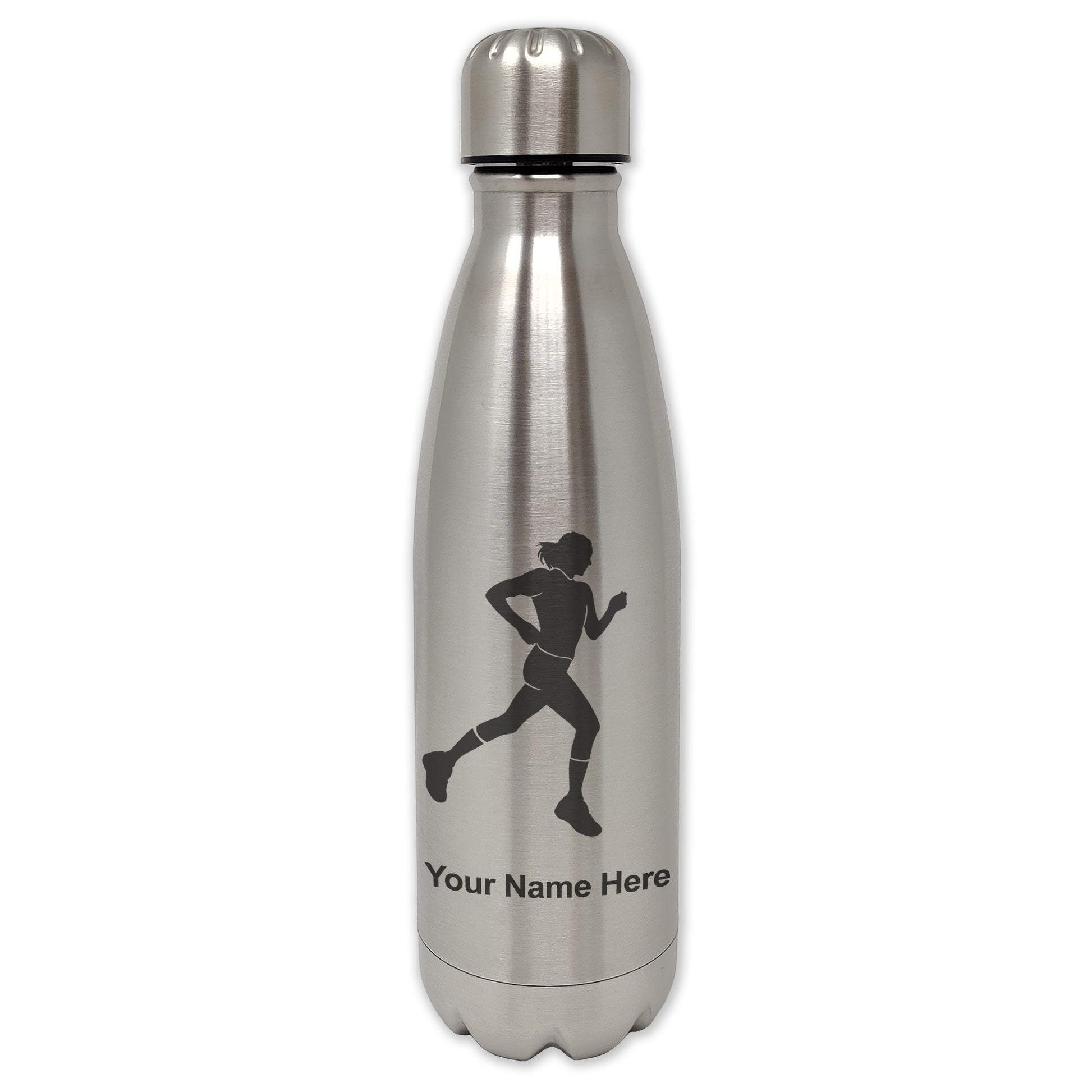 LaserGram Double Wall Water Bottle, Running Woman, Personalized Engraving Included