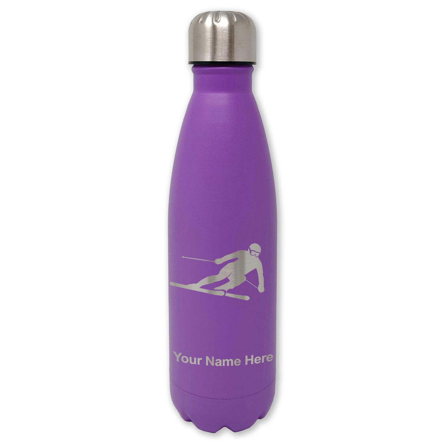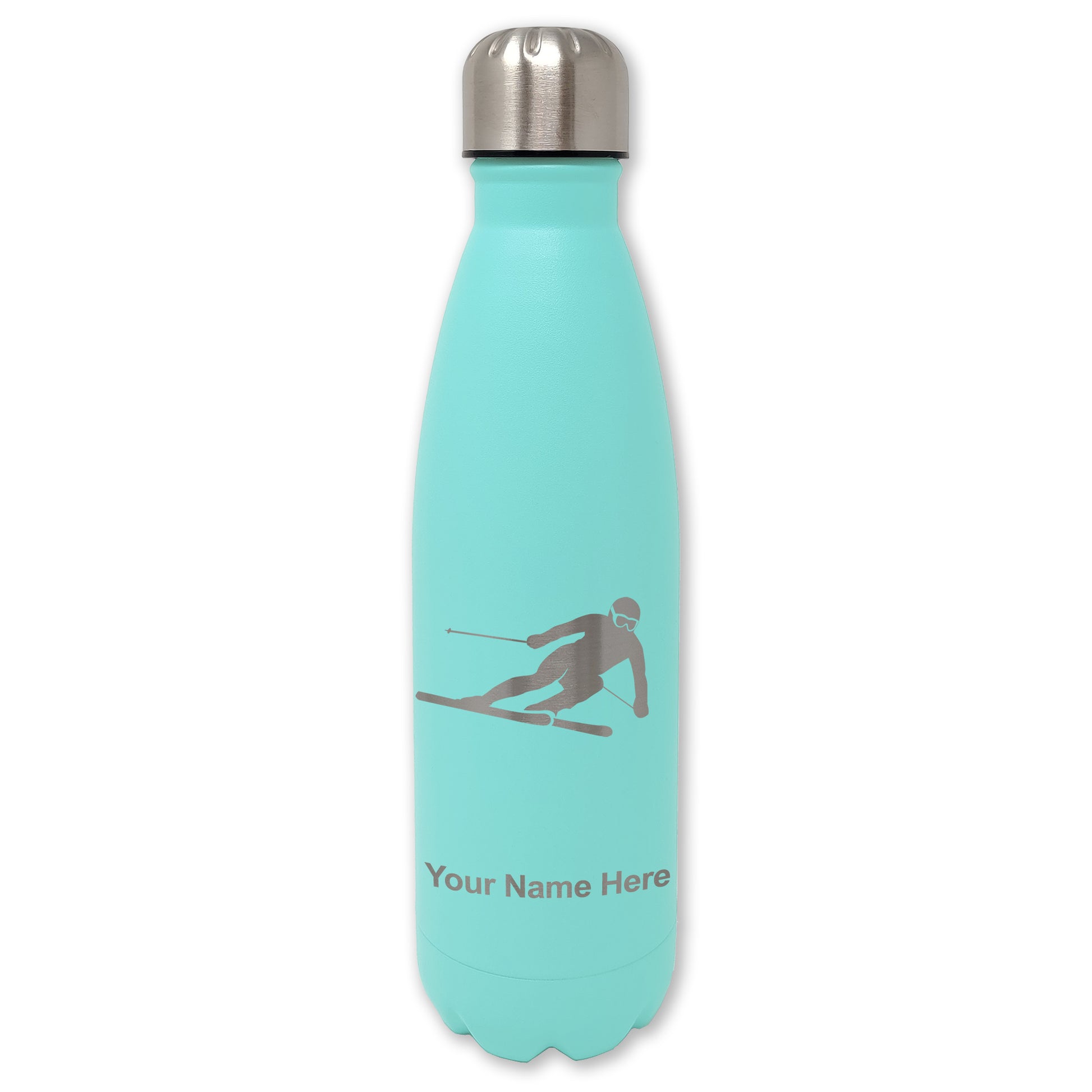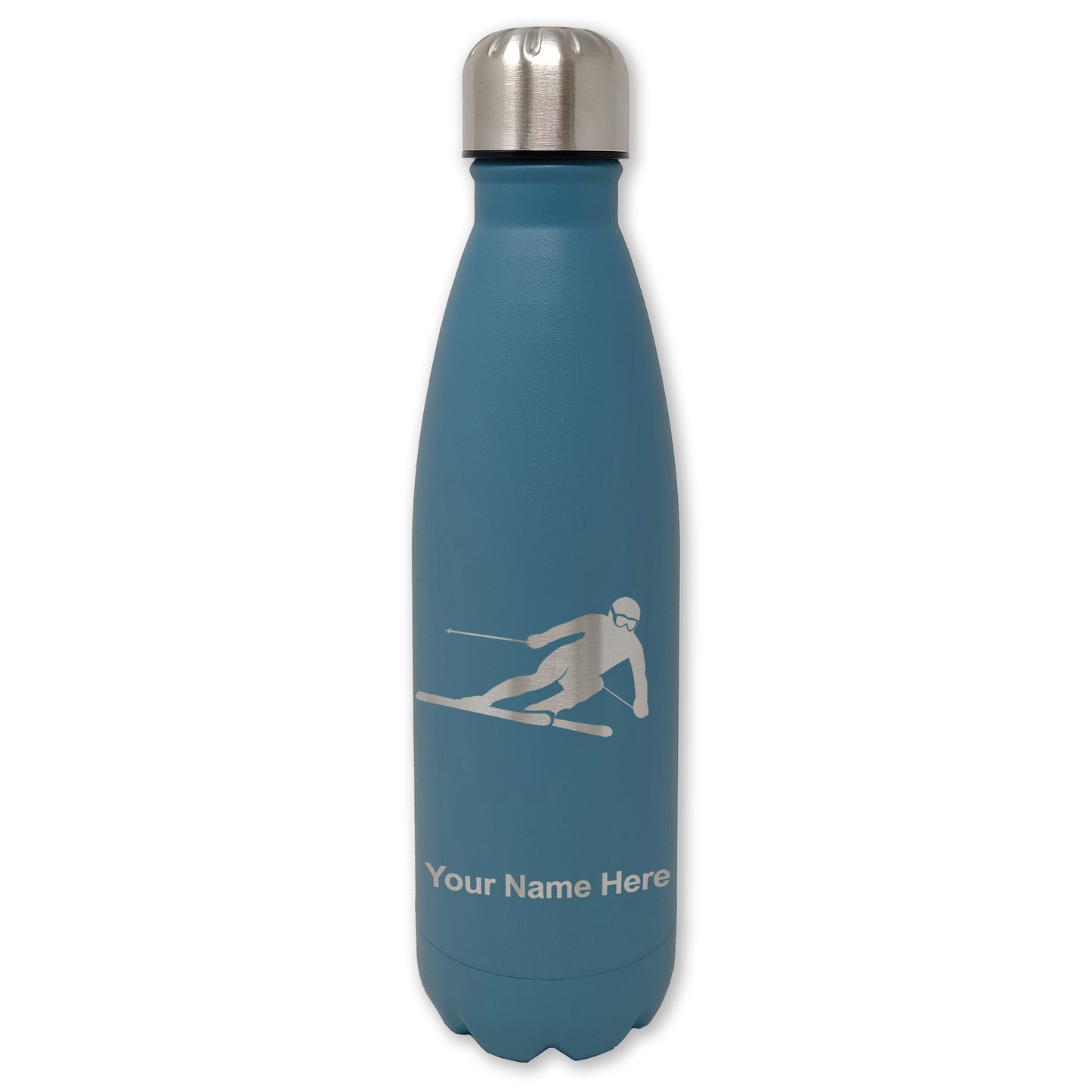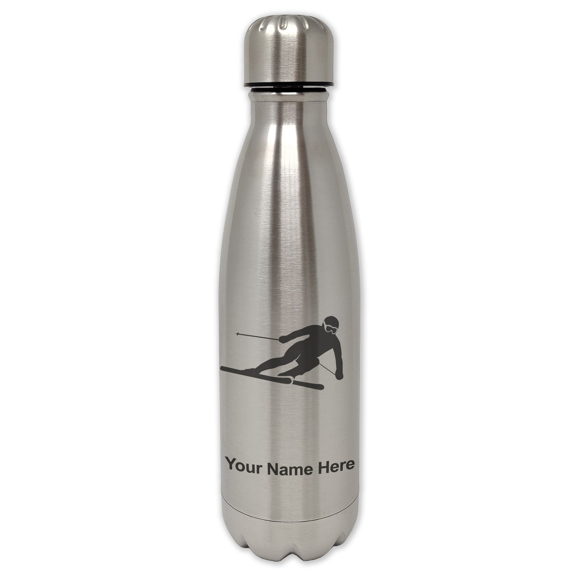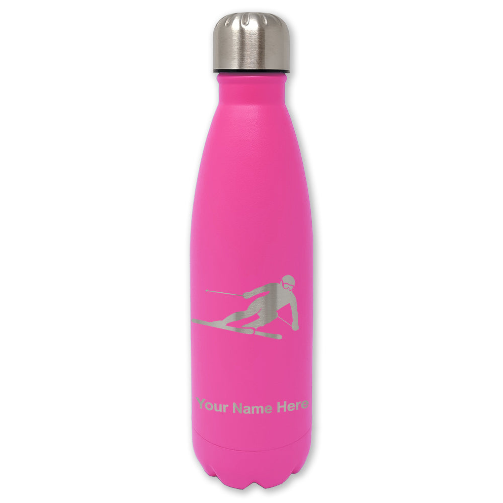 LaserGram Double Wall Water Bottle, Skier Downhill, Personalized Engraving Included