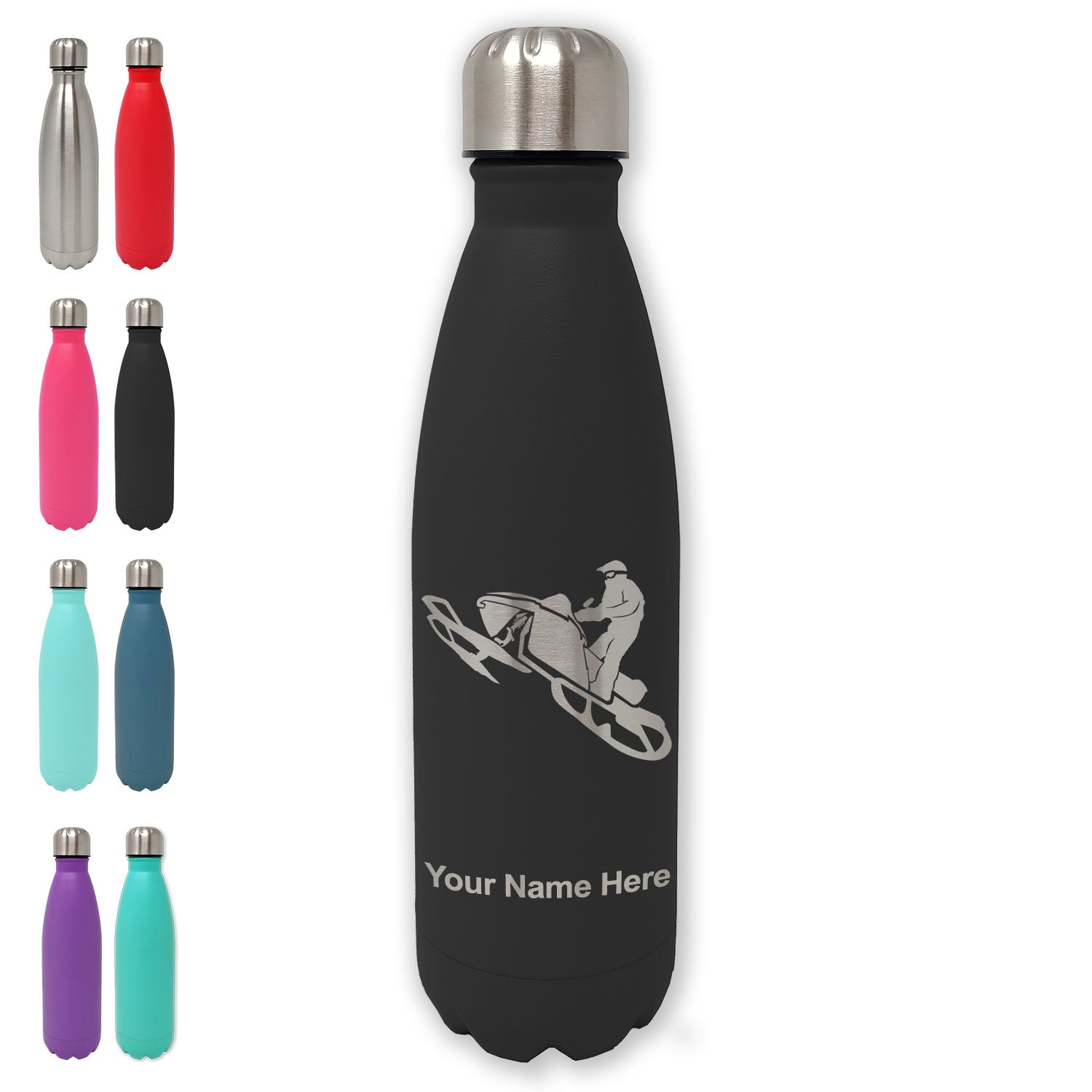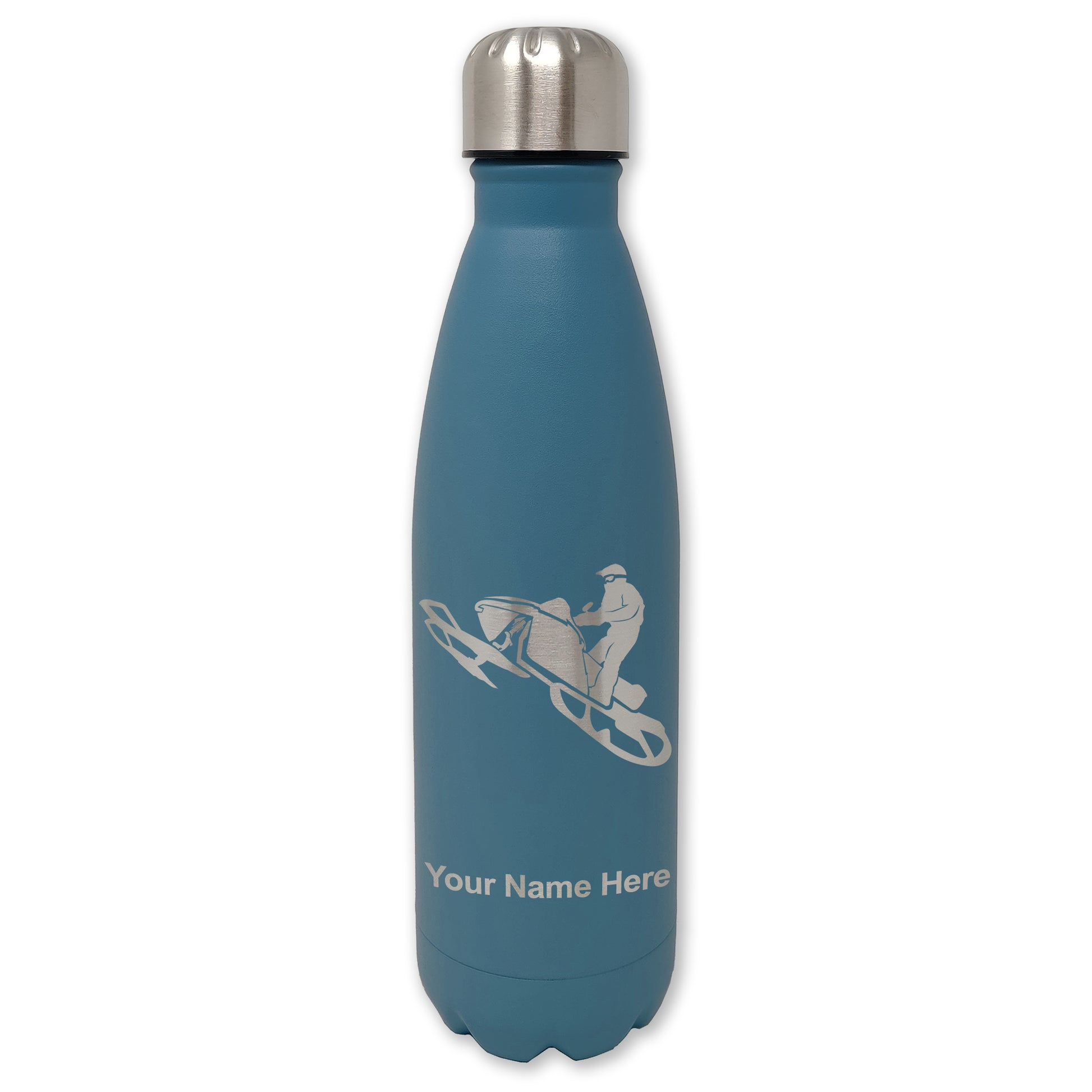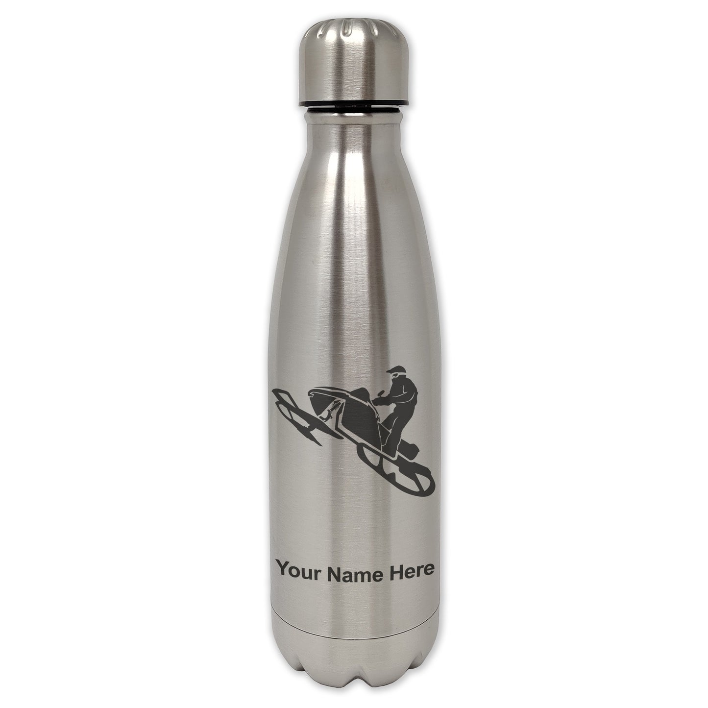 LaserGram Double Wall Water Bottle, Snowmobile, Personalized Engraving Included