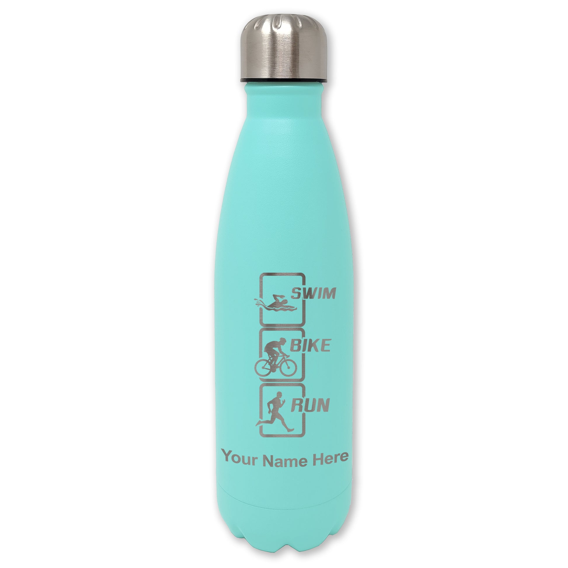 LaserGram Double Wall Water Bottle, Swim Bike Run Vertical, Personalized Engraving Included