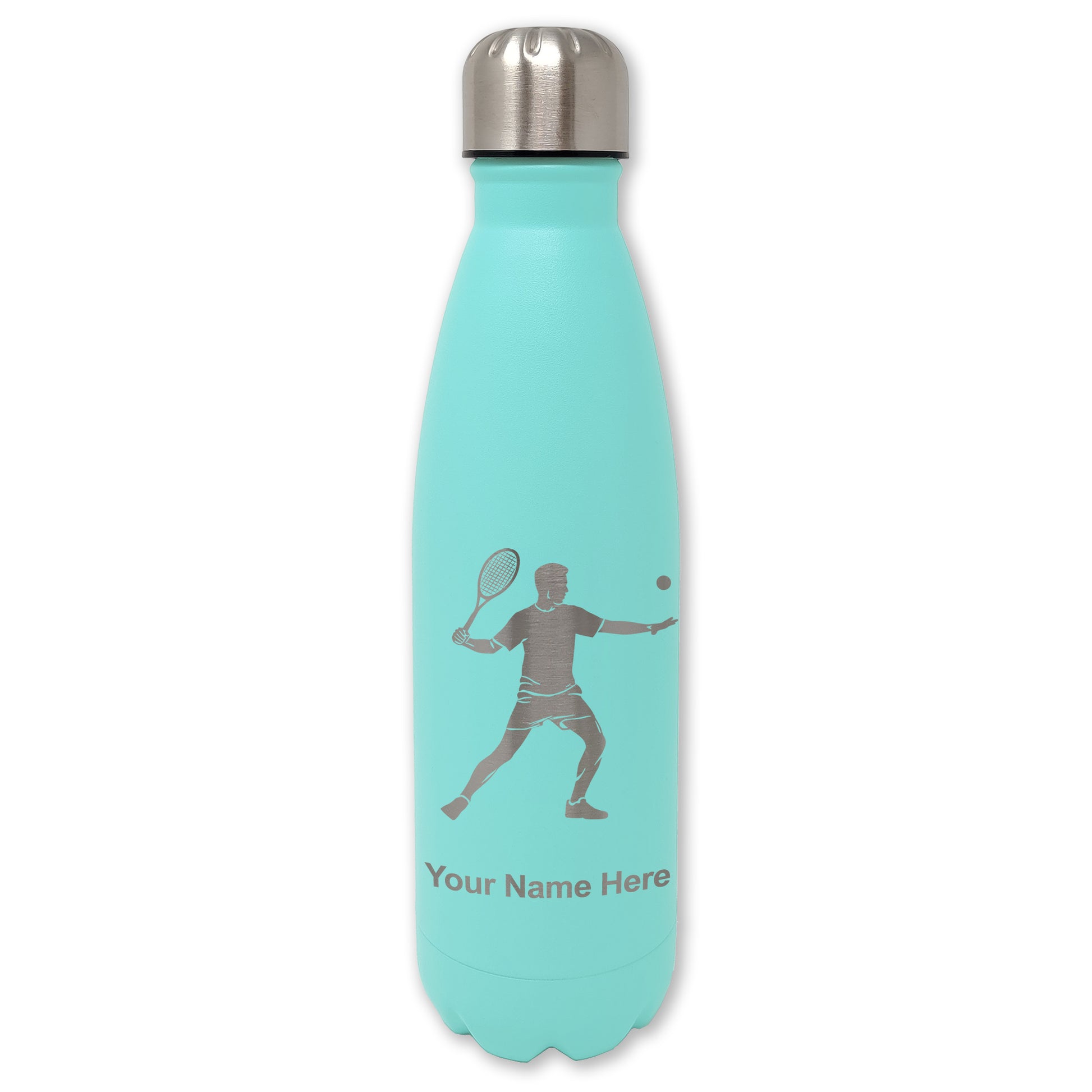 LaserGram Double Wall Water Bottle, Tennis Player Man, Personalized Engraving Included