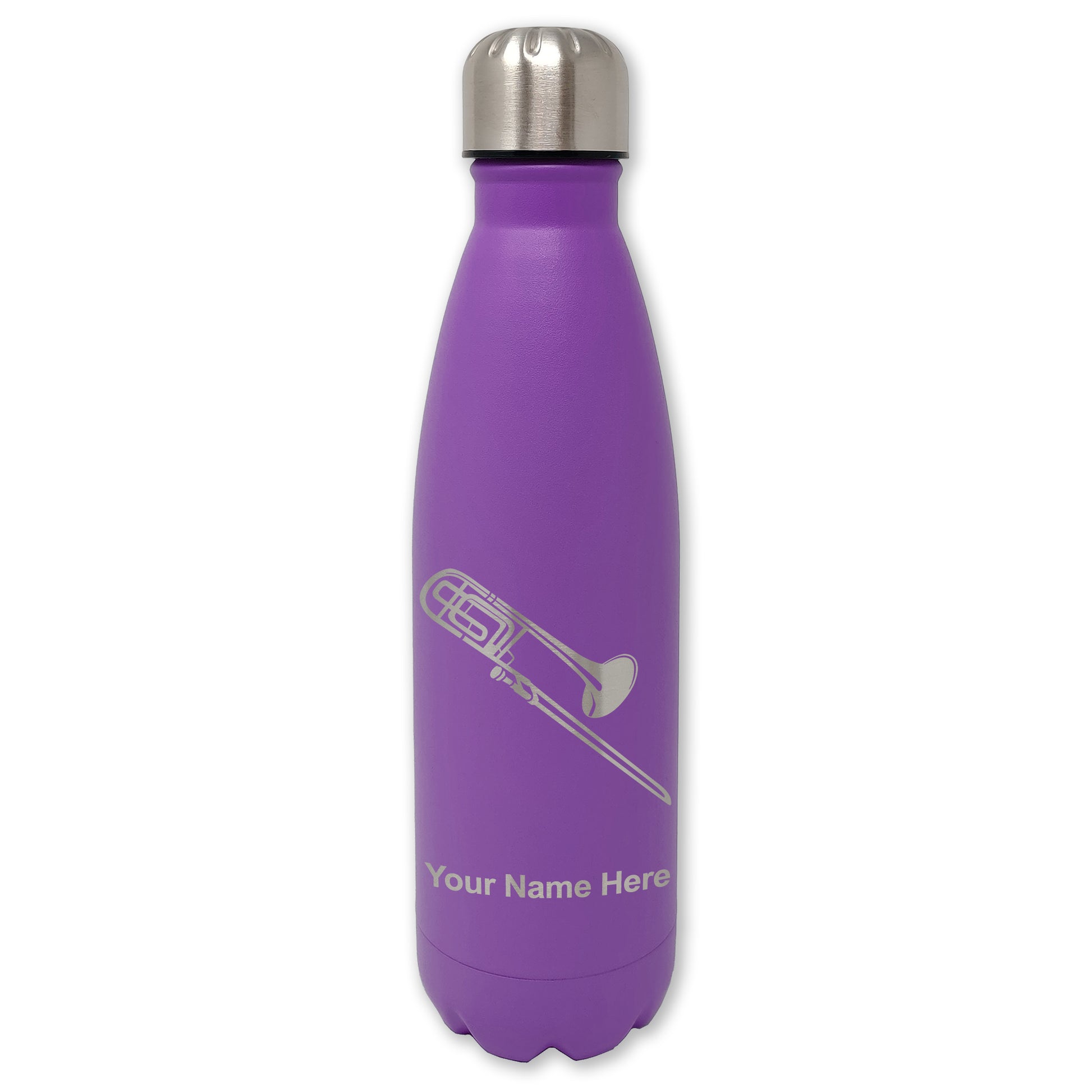 LaserGram Double Wall Water Bottle, Trombone, Personalized Engraving Included