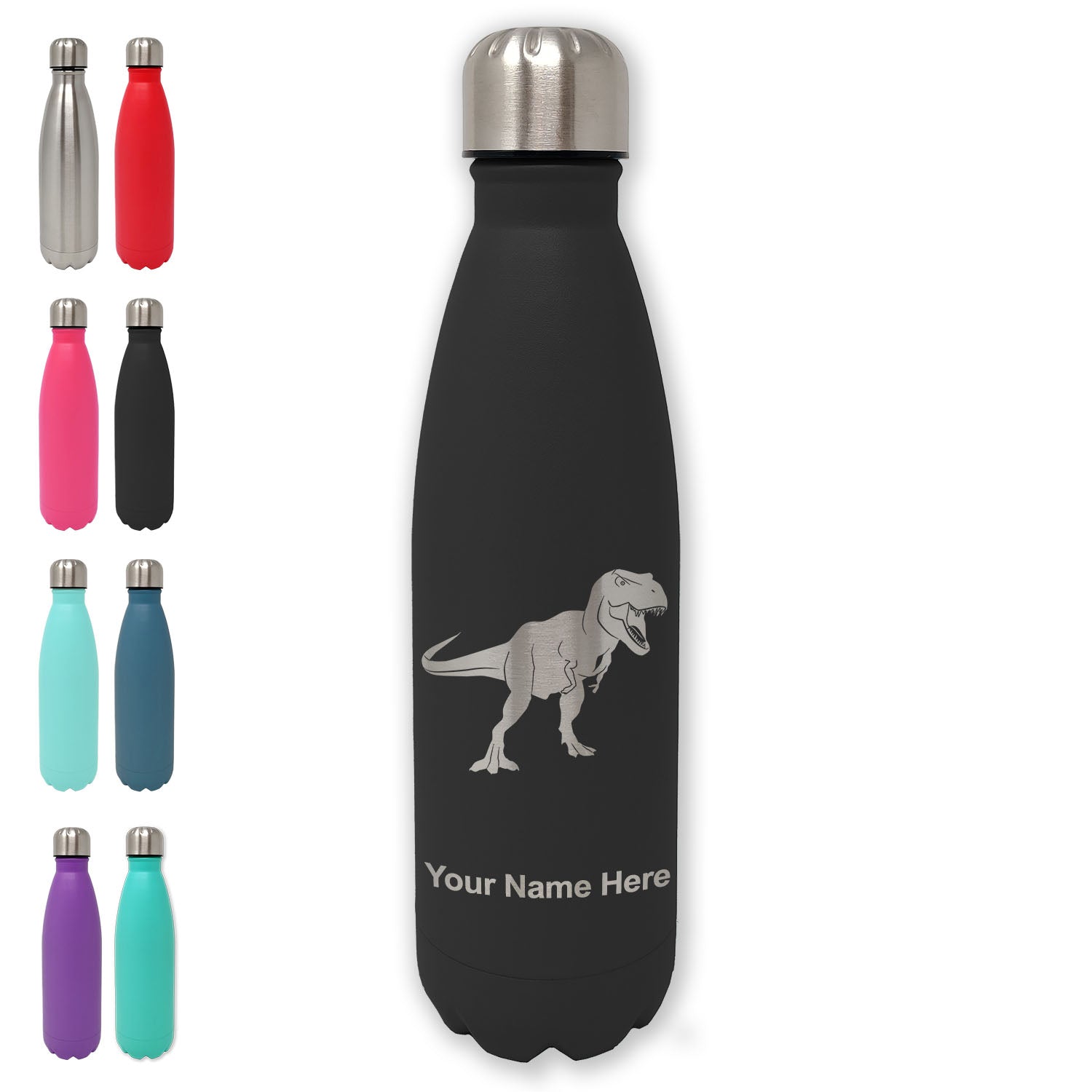 LaserGram Double Wall Water Bottle, Tyrannosaurus Rex Dinosaur, Personalized Engraving Included