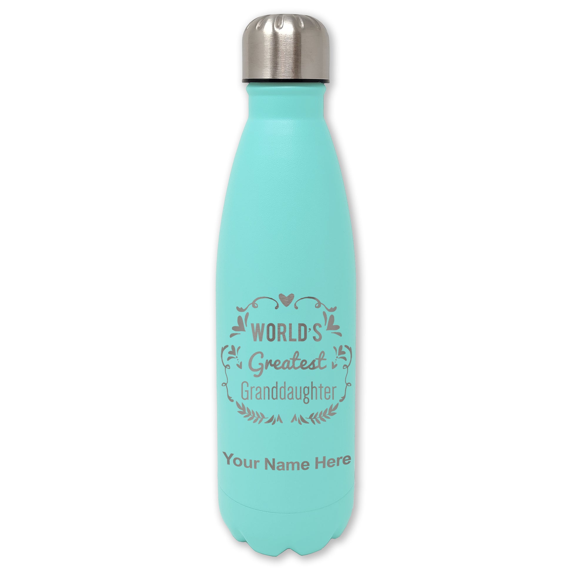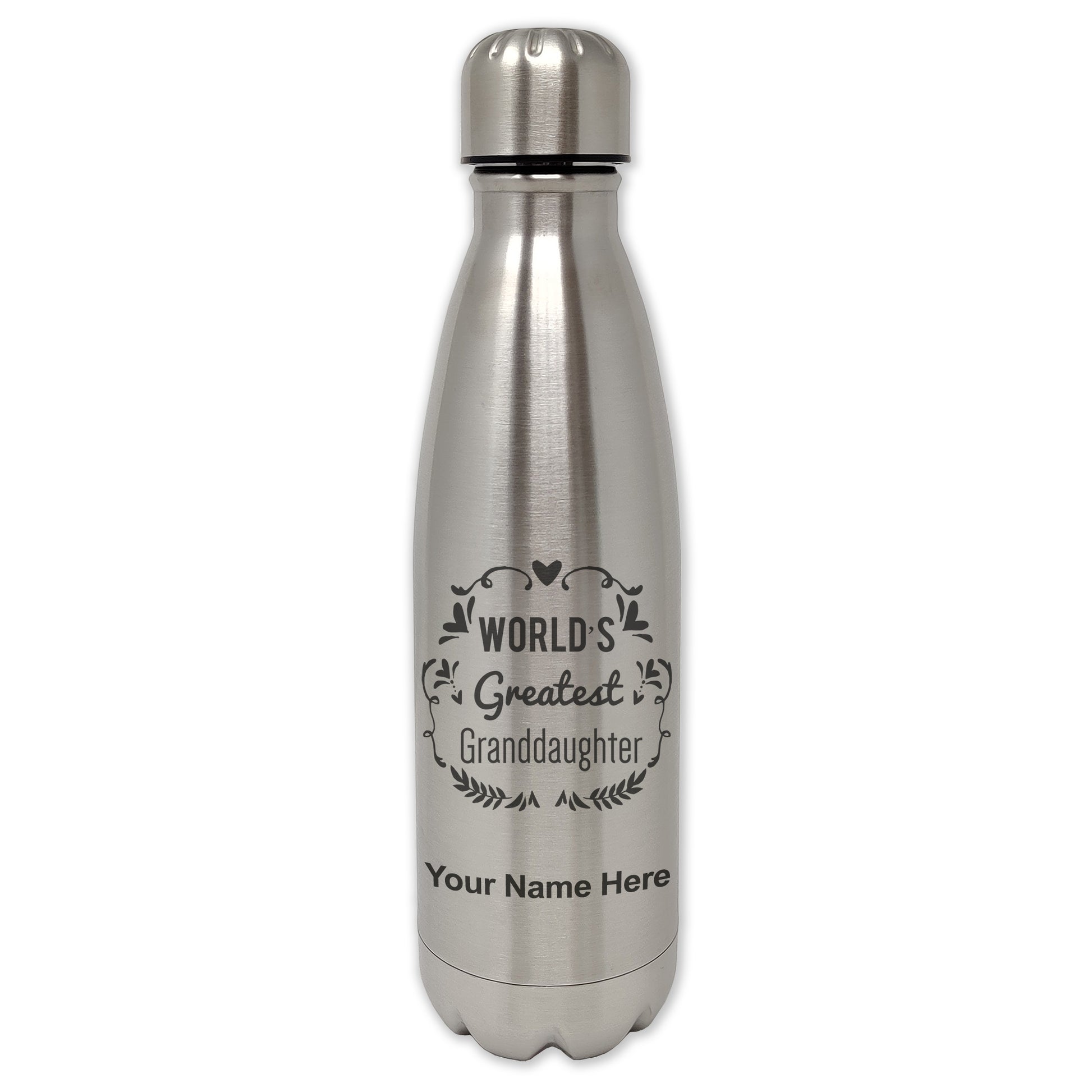 LaserGram Double Wall Water Bottle, World's Greatest Granddaughter, Personalized Engraving Included