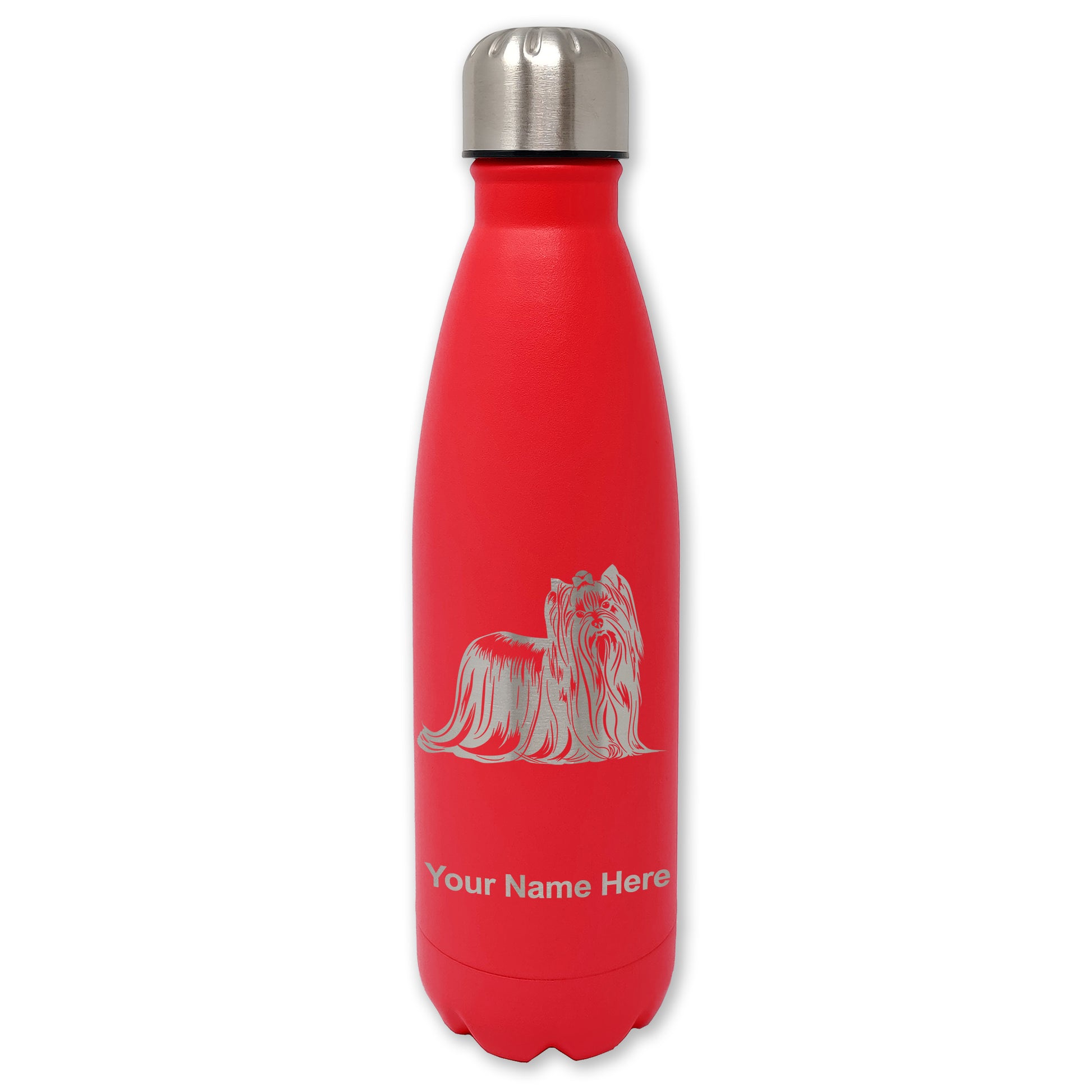 LaserGram Double Wall Water Bottle, Yorkshire Terrier Dog, Personalized Engraving Included