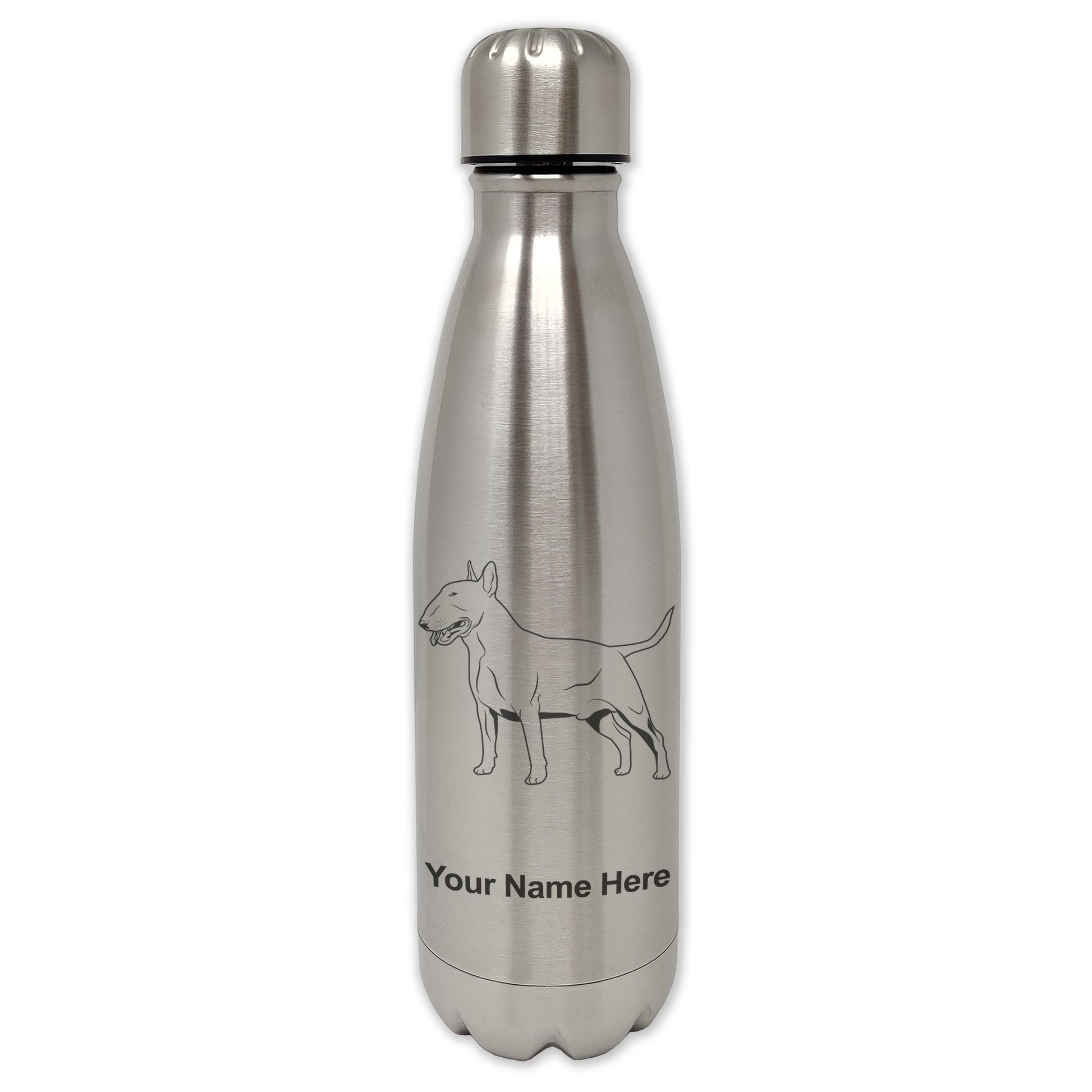 LaserGram Single Wall Water Bottle, Bull Terrier Dog, Personalized Engraving Included