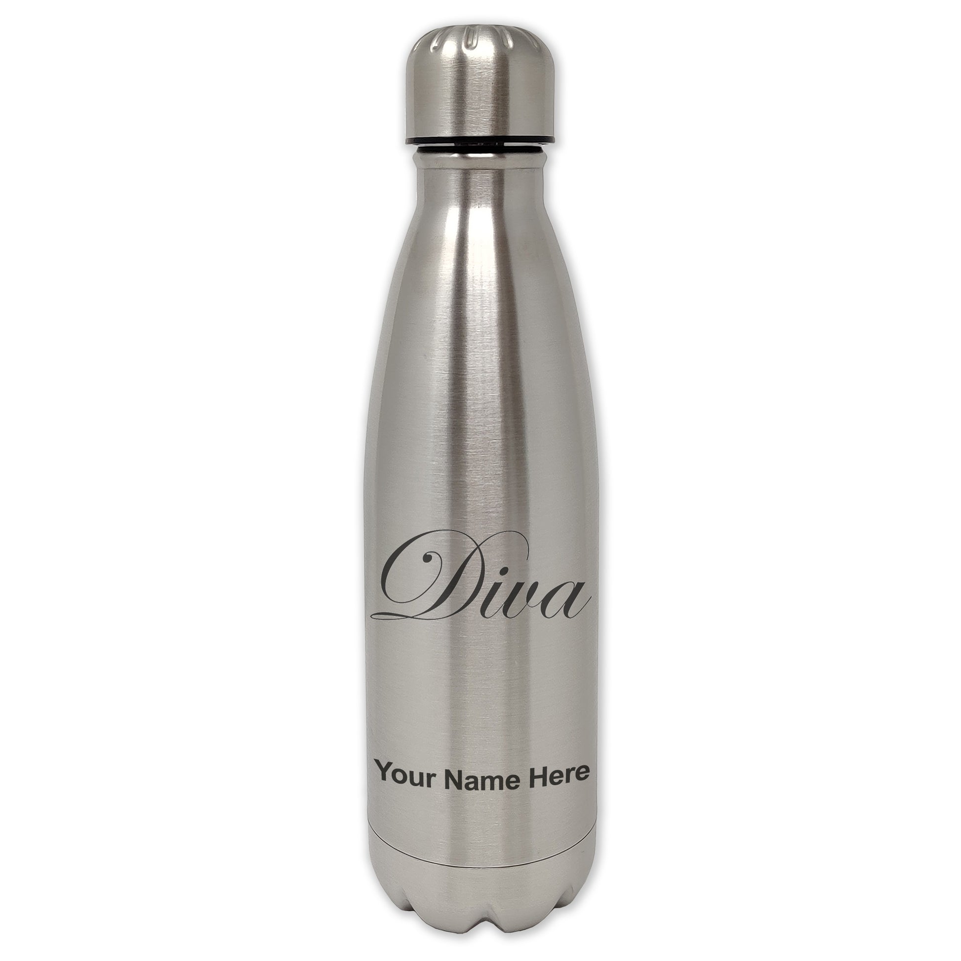 LaserGram Single Wall Water Bottle, Diva, Personalized Engraving Included