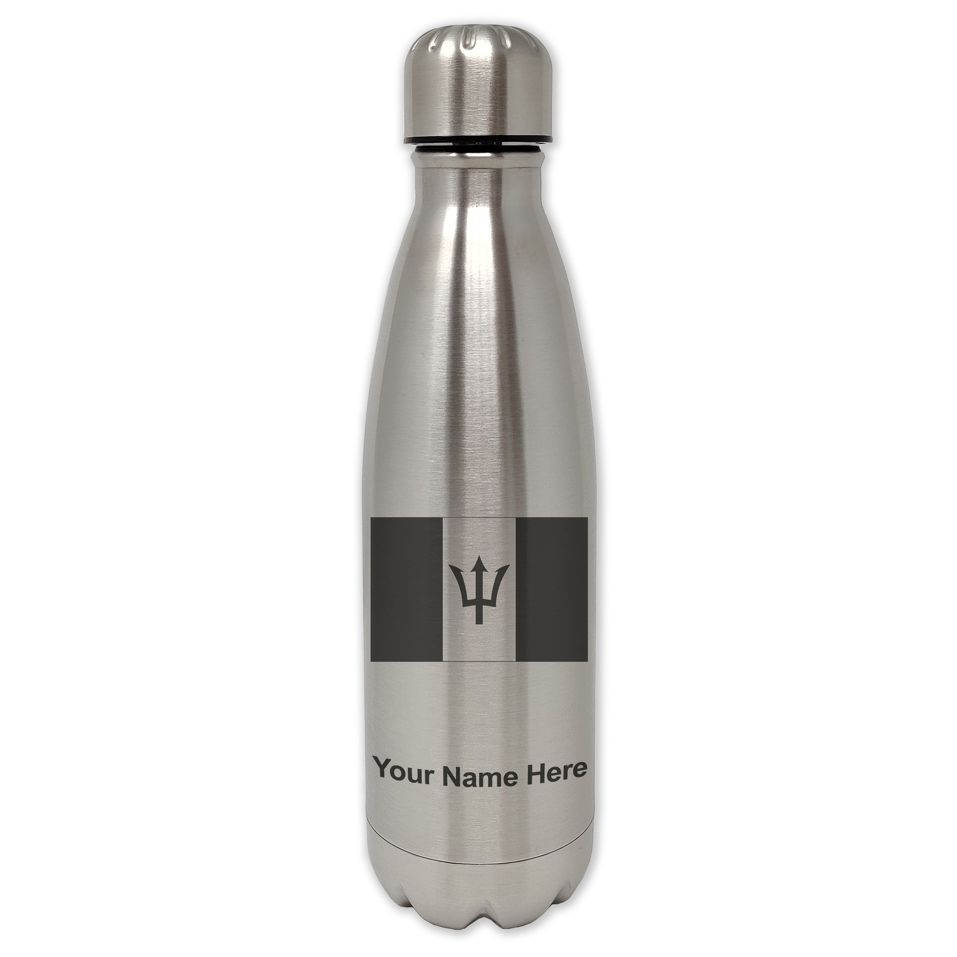 LaserGram Single Wall Water Bottle, Flag of Barbados, Personalized Engraving Included