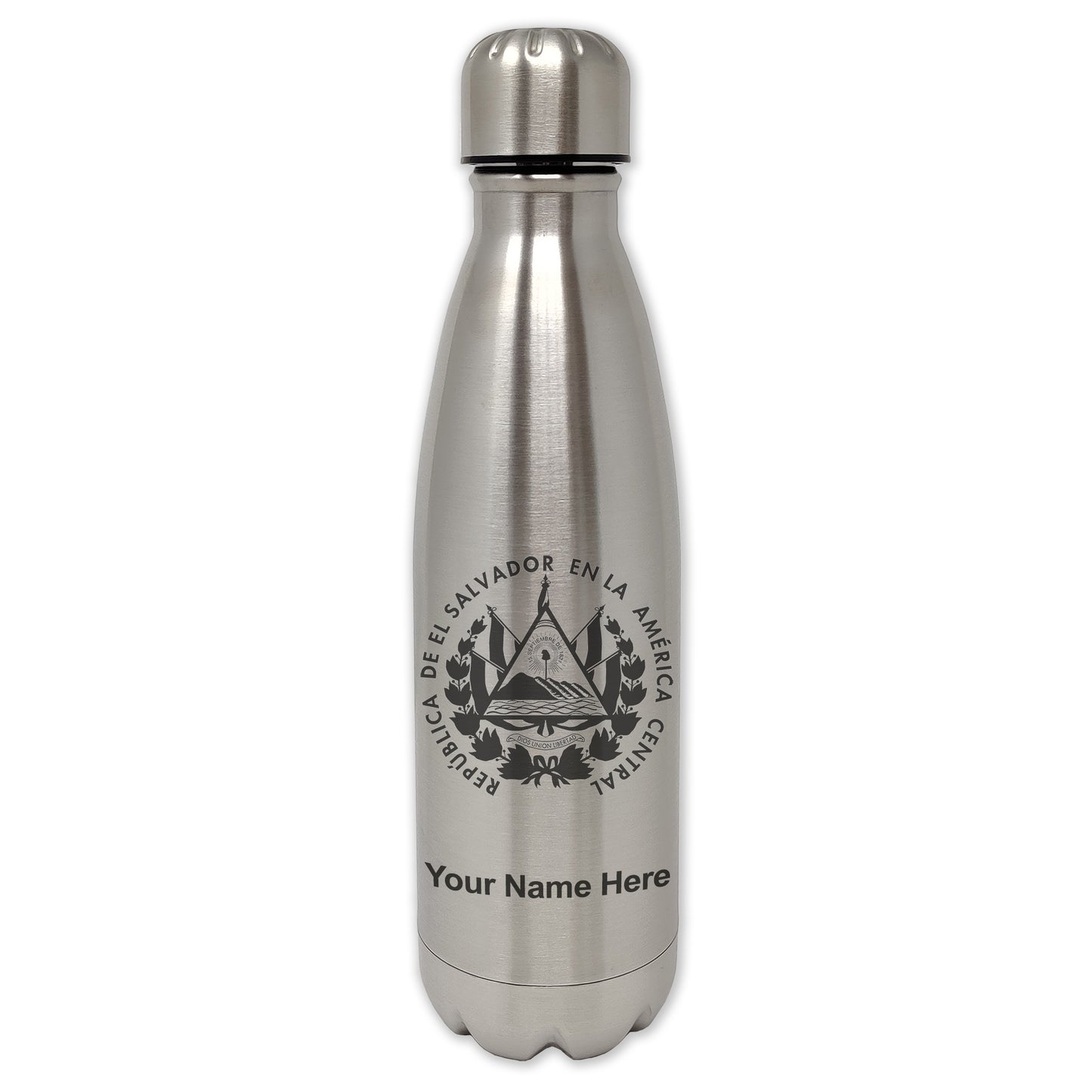 LaserGram Single Wall Water Bottle, Flag of El Salvador, Personalized Engraving Included