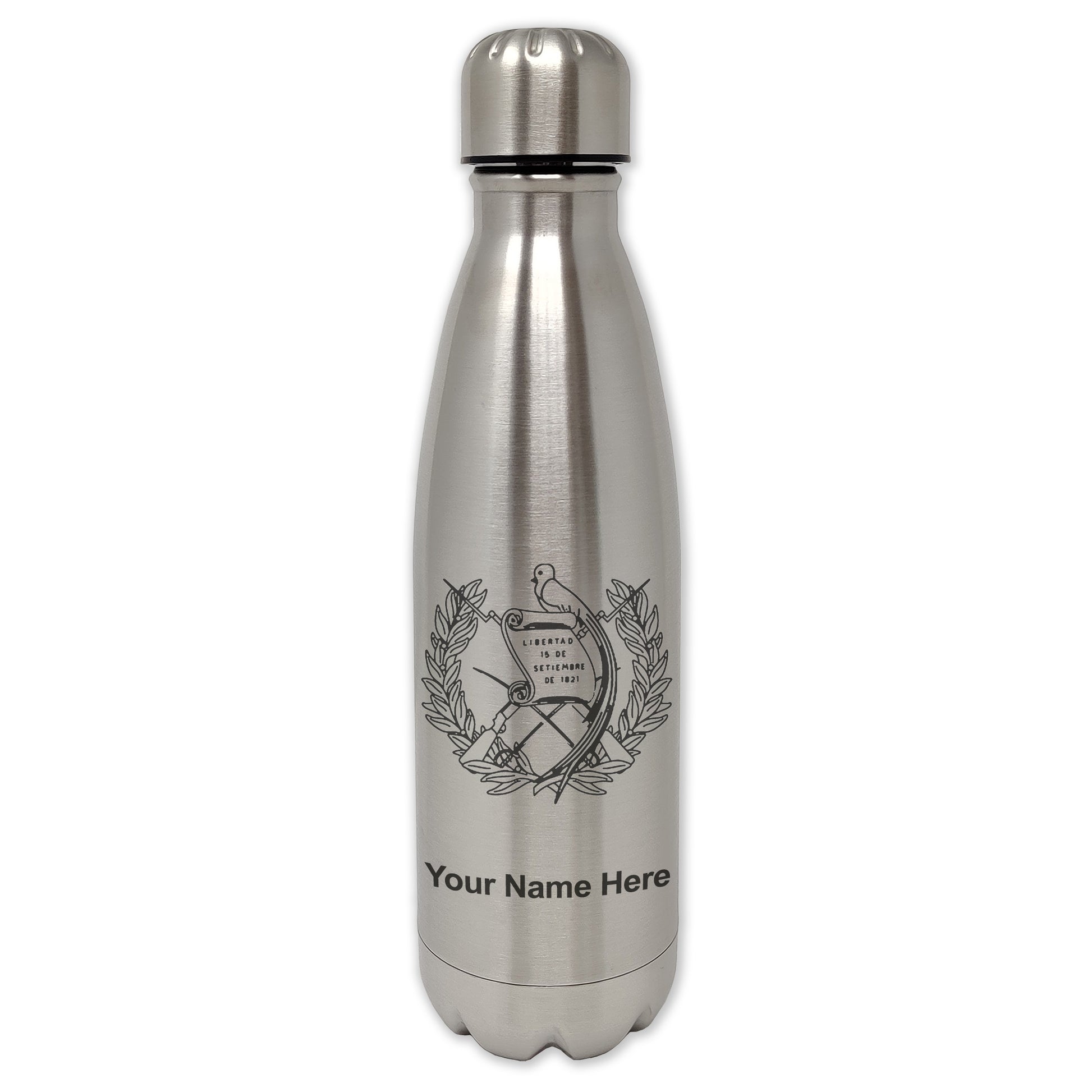 LaserGram Single Wall Water Bottle, Flag of Guatemala, Personalized Engraving Included