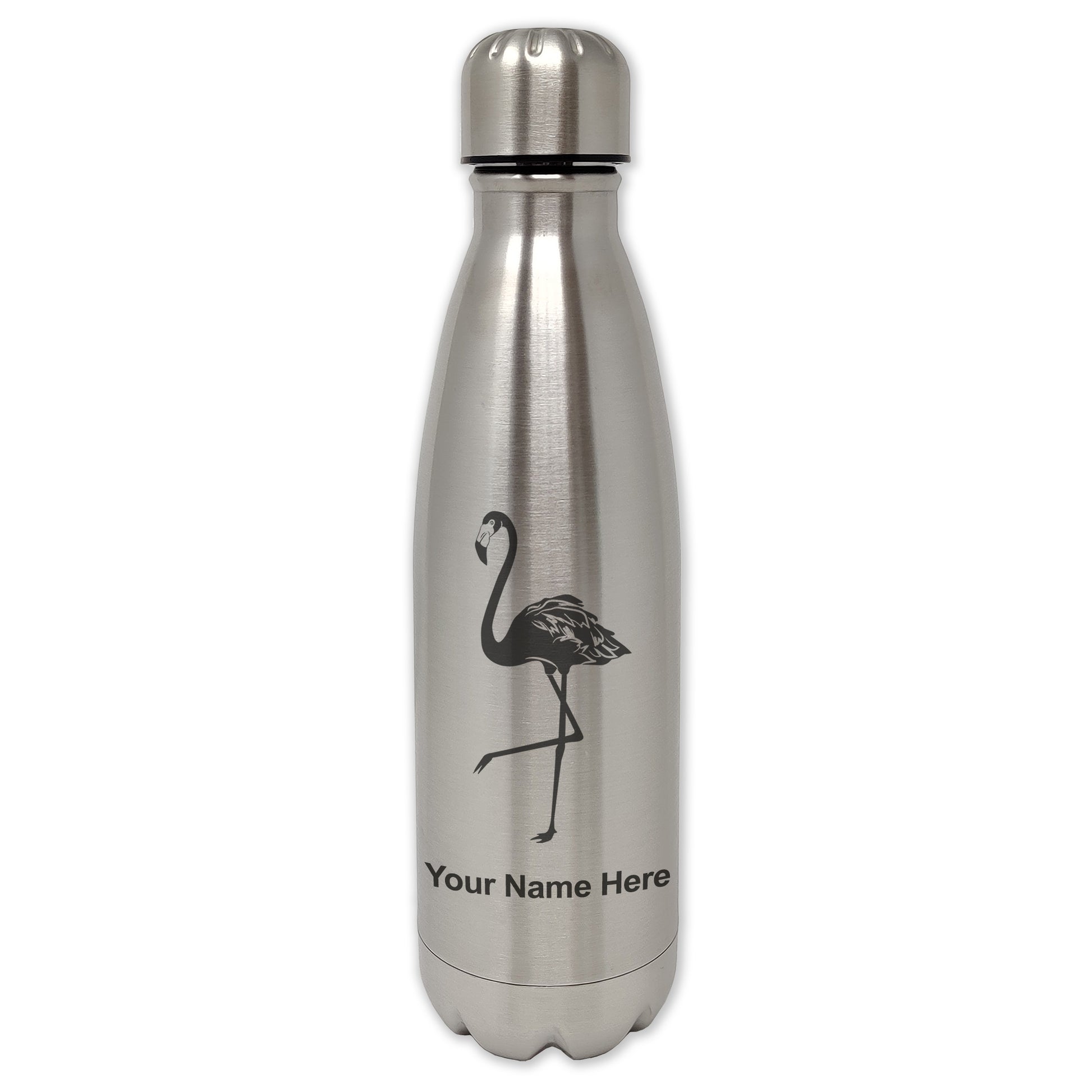 LaserGram Single Wall Water Bottle, Flamingo, Personalized Engraving Included