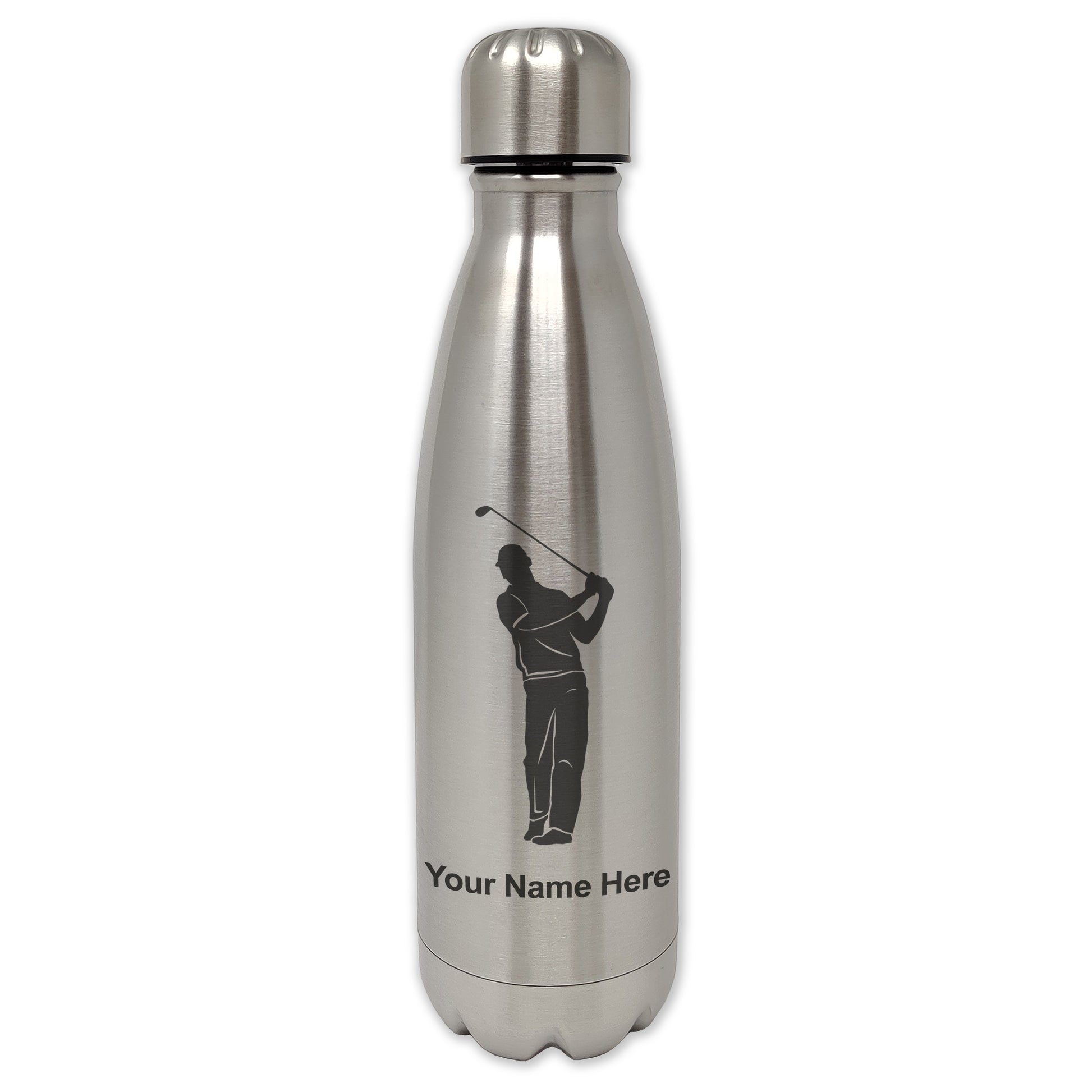 LaserGram Single Wall Water Bottle, Golfer, Personalized Engraving Included