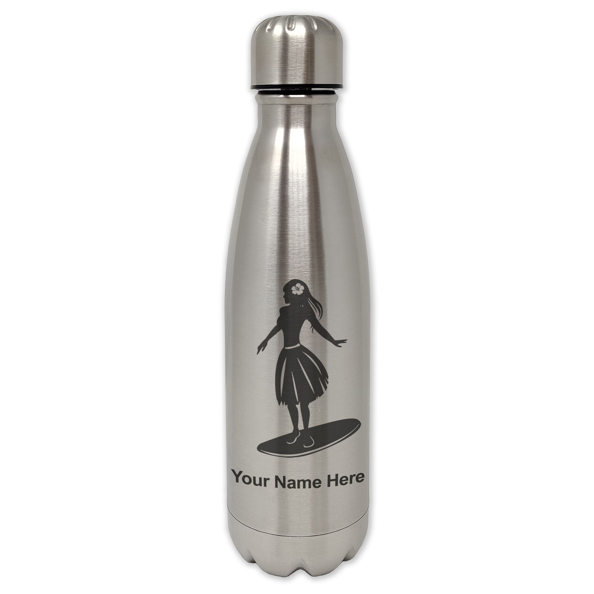 LaserGram Single Wall Water Bottle, Hawaiian Surfer Girl, Personalized Engraving Included