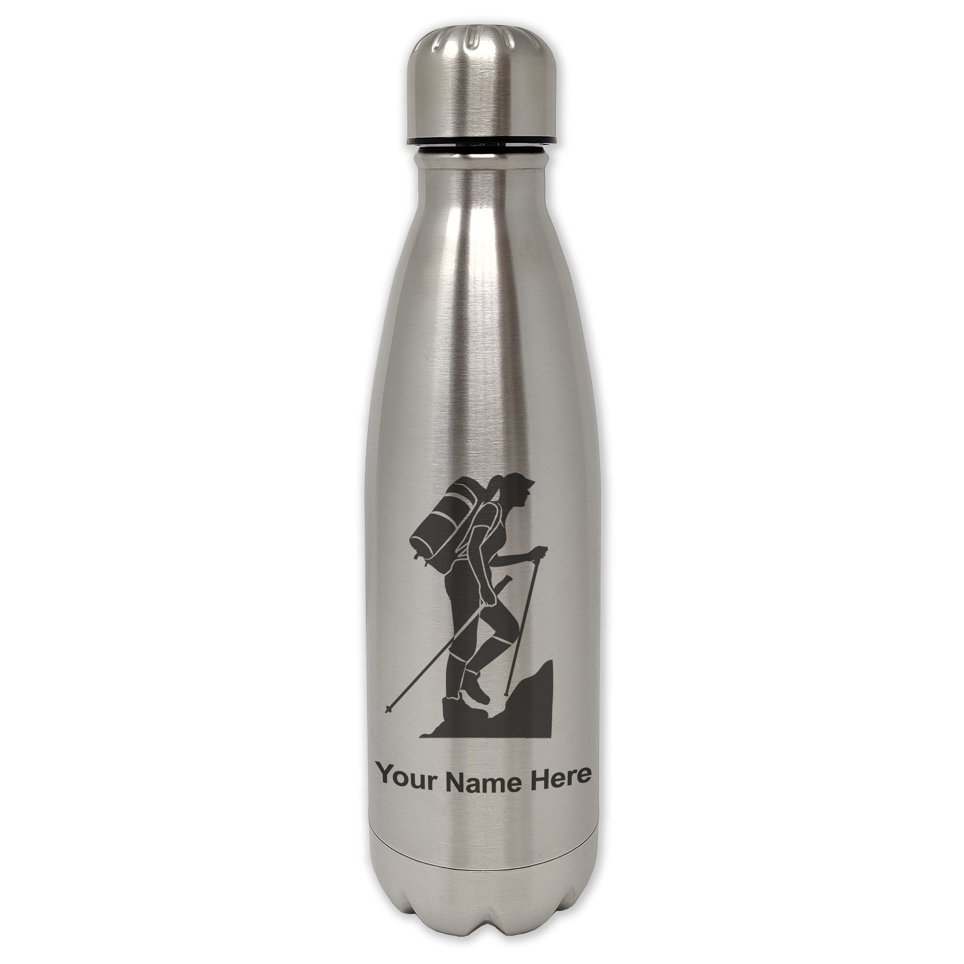 LaserGram Single Wall Water Bottle, Hiker Woman, Personalized Engraving Included