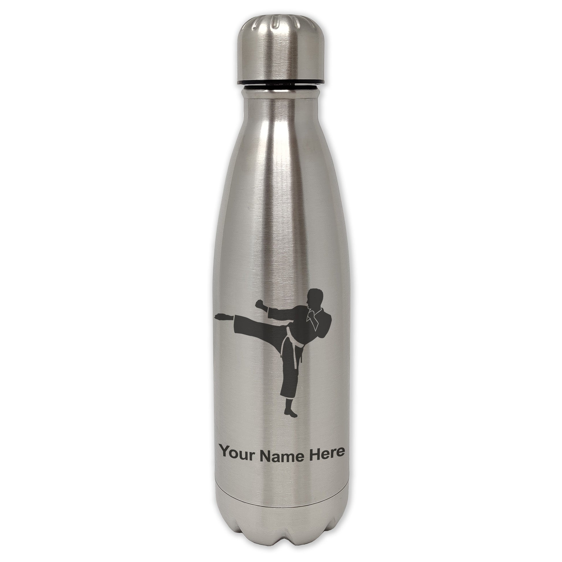 LaserGram Single Wall Water Bottle, Karate Man, Personalized Engraving Included