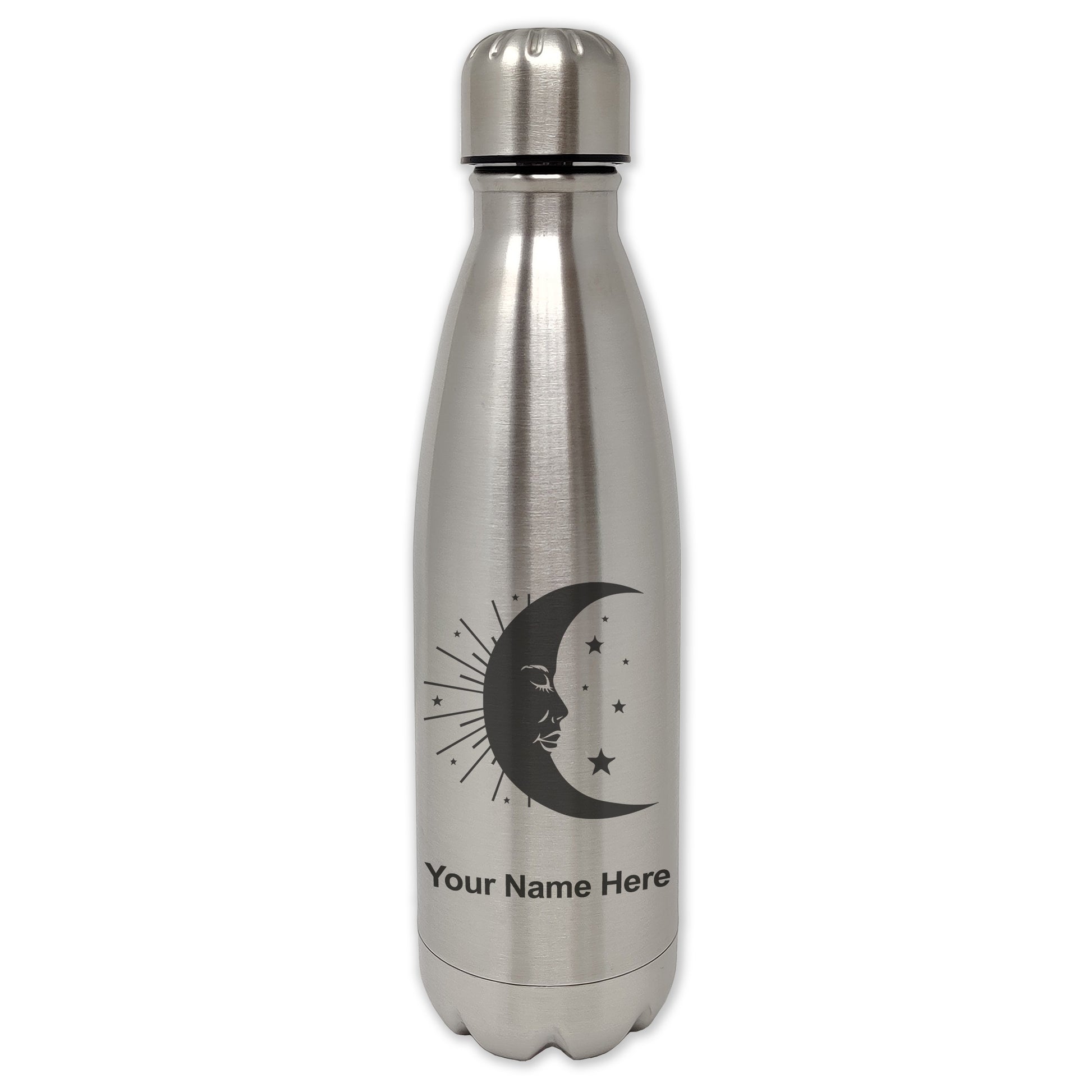 LaserGram Single Wall Water Bottle, Moon, Personalized Engraving Included