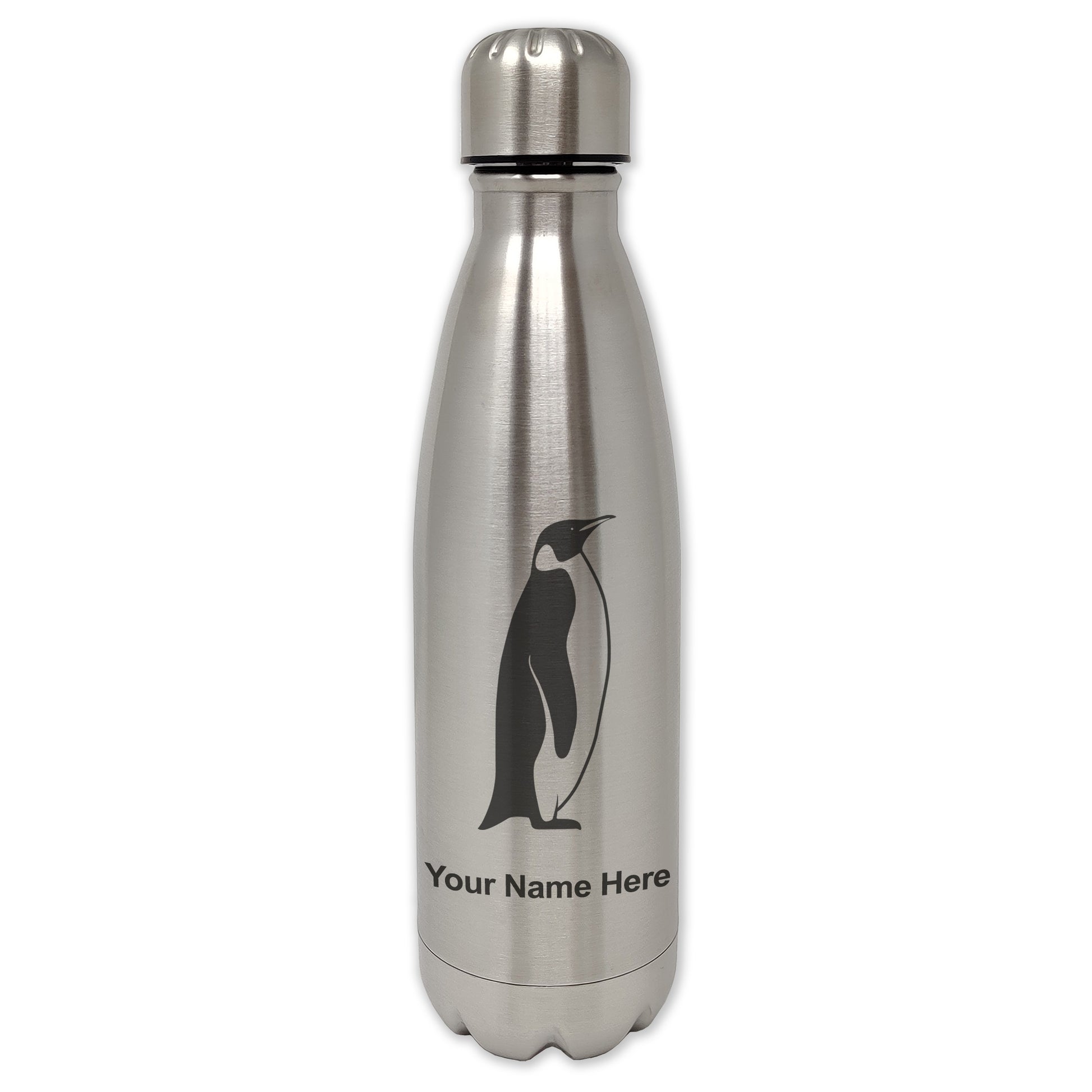LaserGram Single Wall Water Bottle, Penguin, Personalized Engraving Included