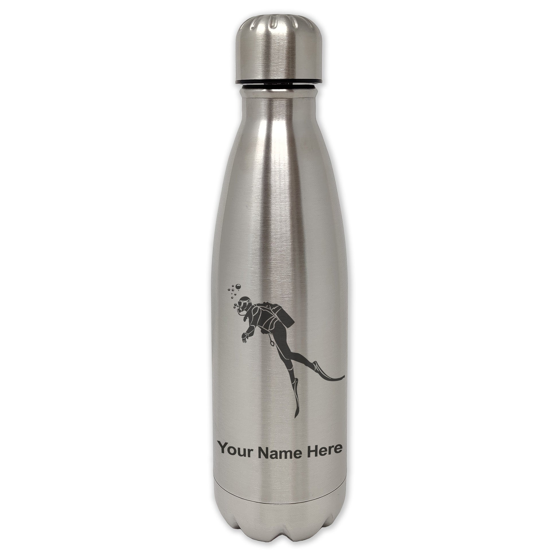 LaserGram Single Wall Water Bottle, Scuba Diver, Personalized Engraving Included