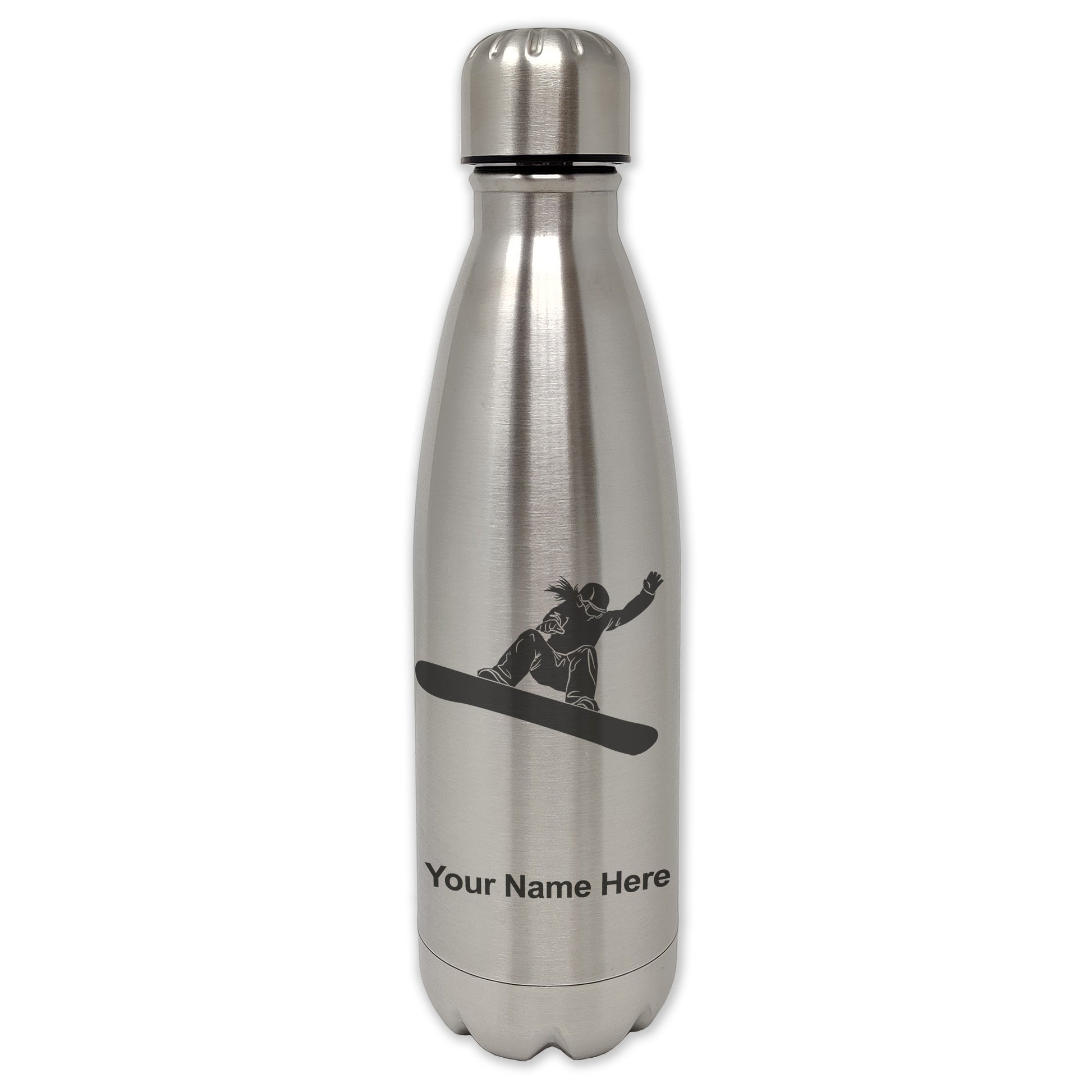 LaserGram Single Wall Water Bottle, Snowboarder Woman, Personalized Engraving Included