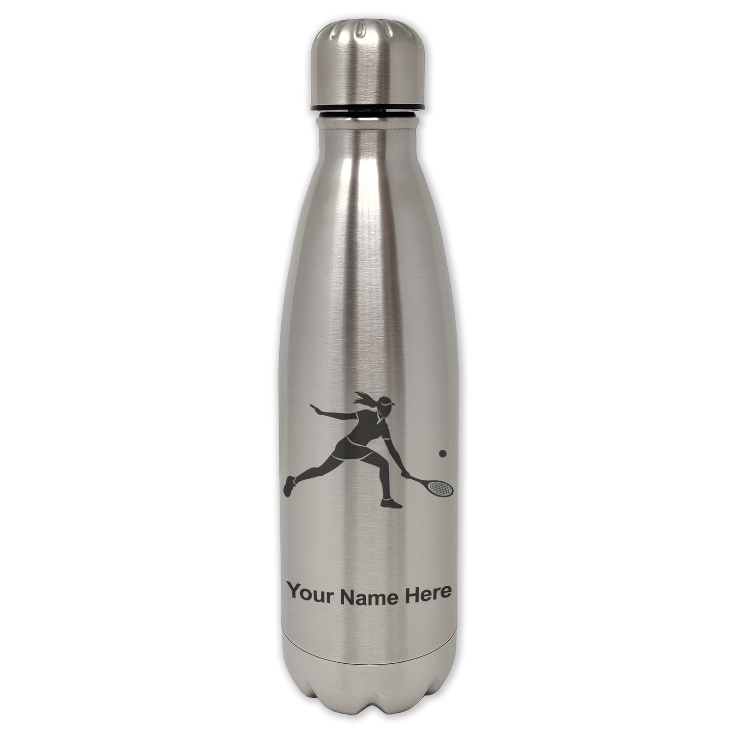 LaserGram Single Wall Water Bottle, Tennis Player Woman, Personalized Engraving Included