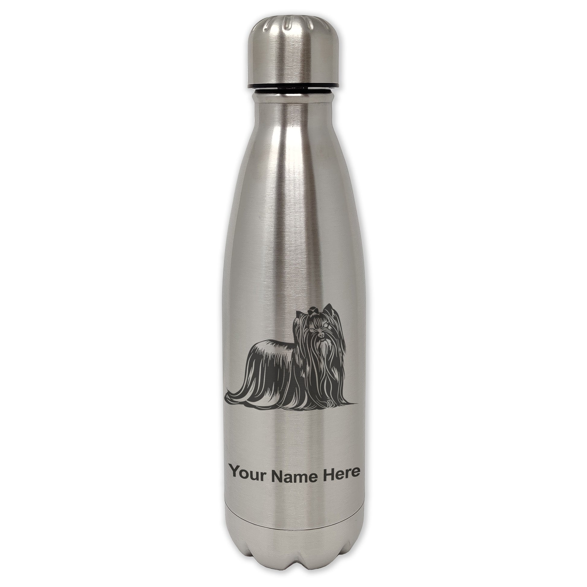 LaserGram Single Wall Water Bottle, Yorkshire Terrier Dog, Personalized Engraving Included