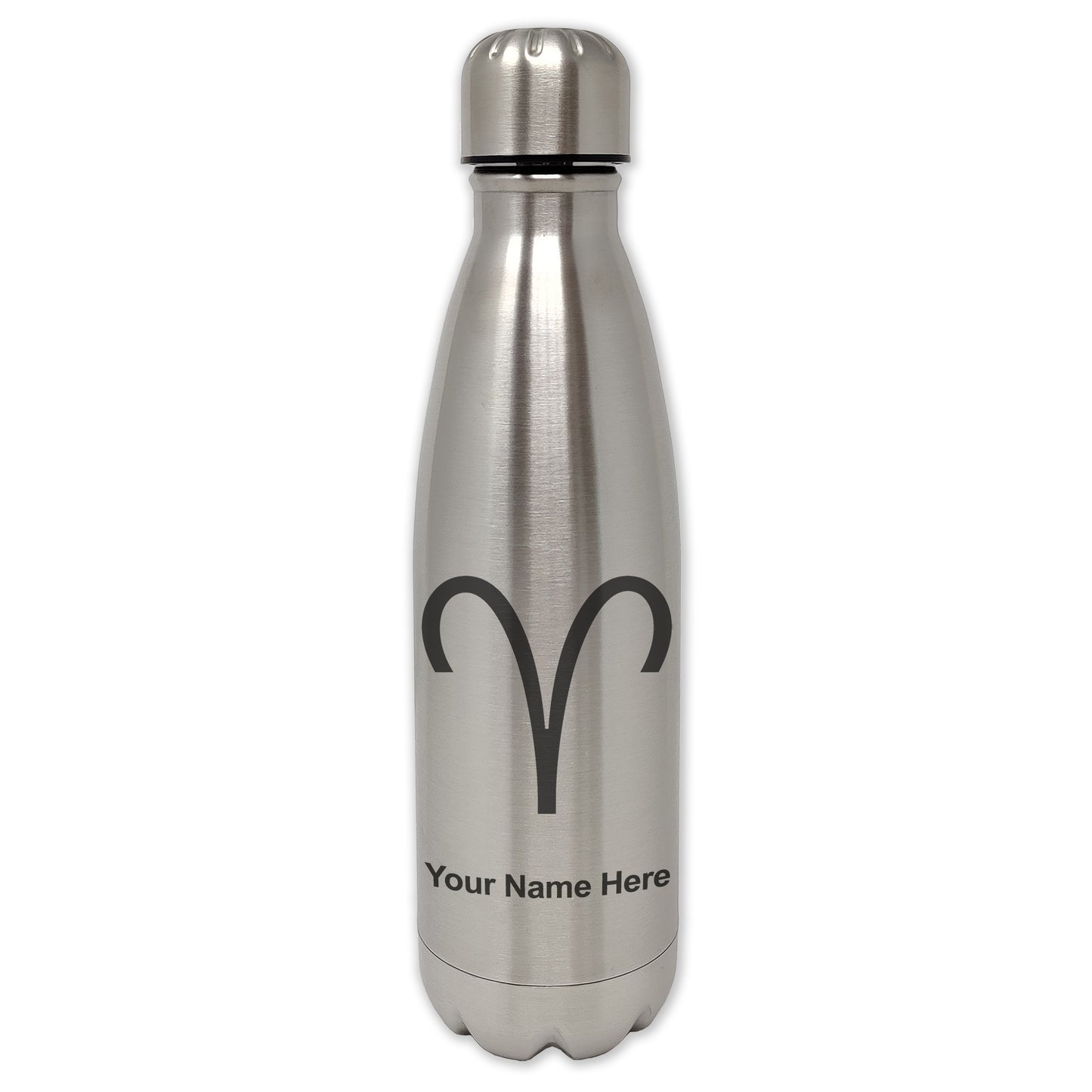 LaserGram Single Wall Water Bottle, Zodiac Sign Aries, Personalized Engraving Included