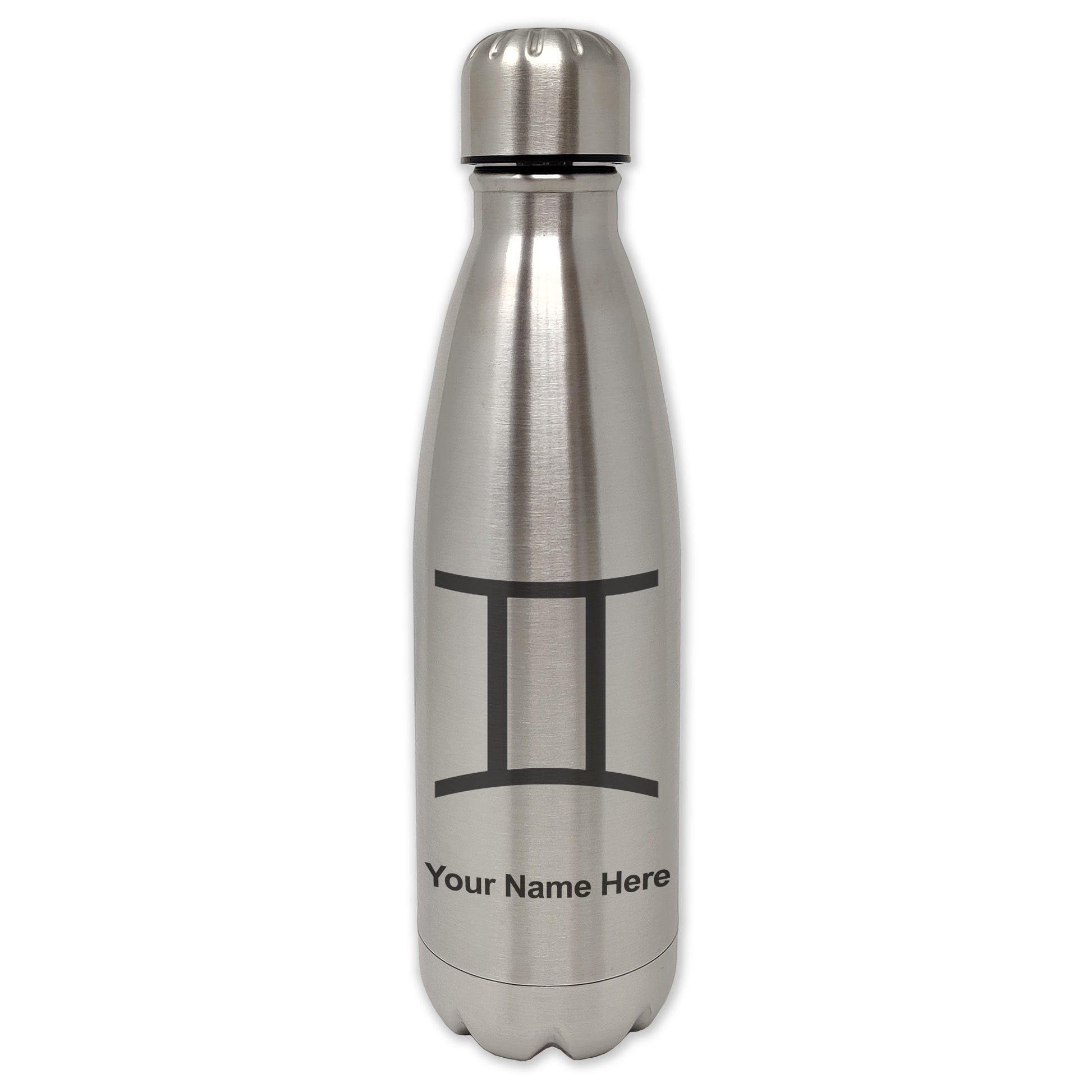 LaserGram Single Wall Water Bottle, Zodiac Sign Gemini, Personalized Engraving Included